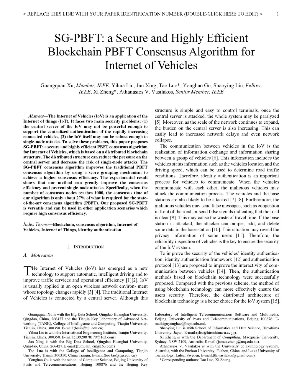 SG-PBFT: a Secure and Highly Efficient Blockchain PBFT Consensus