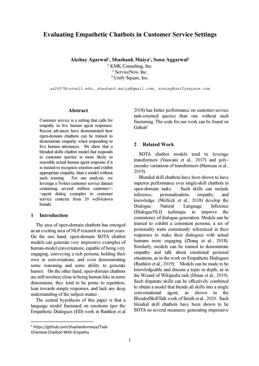 Evaluating Empathetic Chatbots in Customer Service Settings