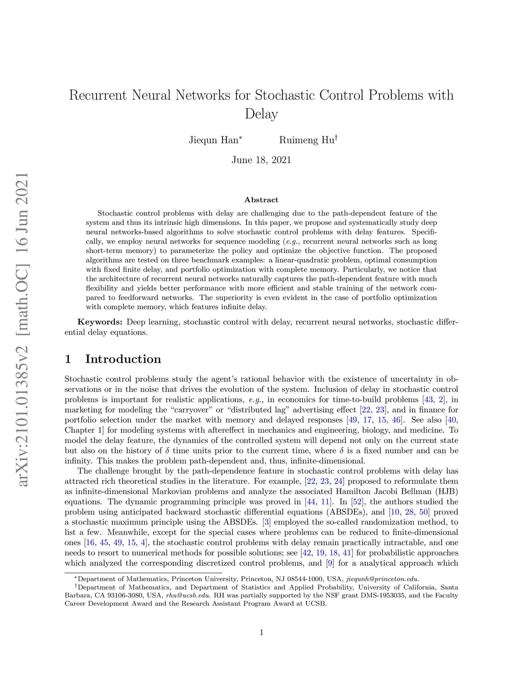 Recurrent Neural Networks for Stochastic Control Problems with Delay