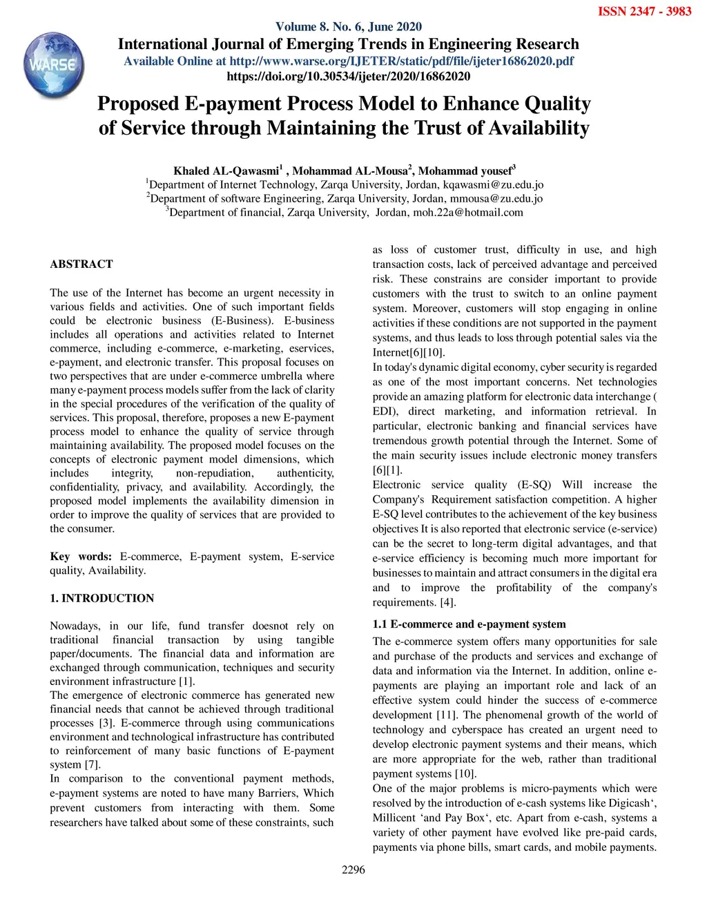 Proposed E-payment Process Model to Enhance Quality of Service through