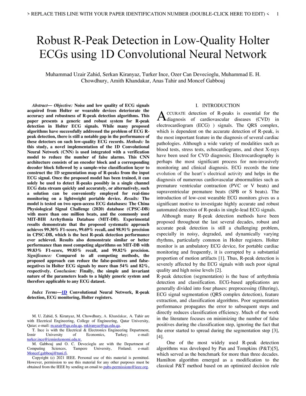 Robust R-Peak Detection in Low-Quality Holter ECGs using 1D