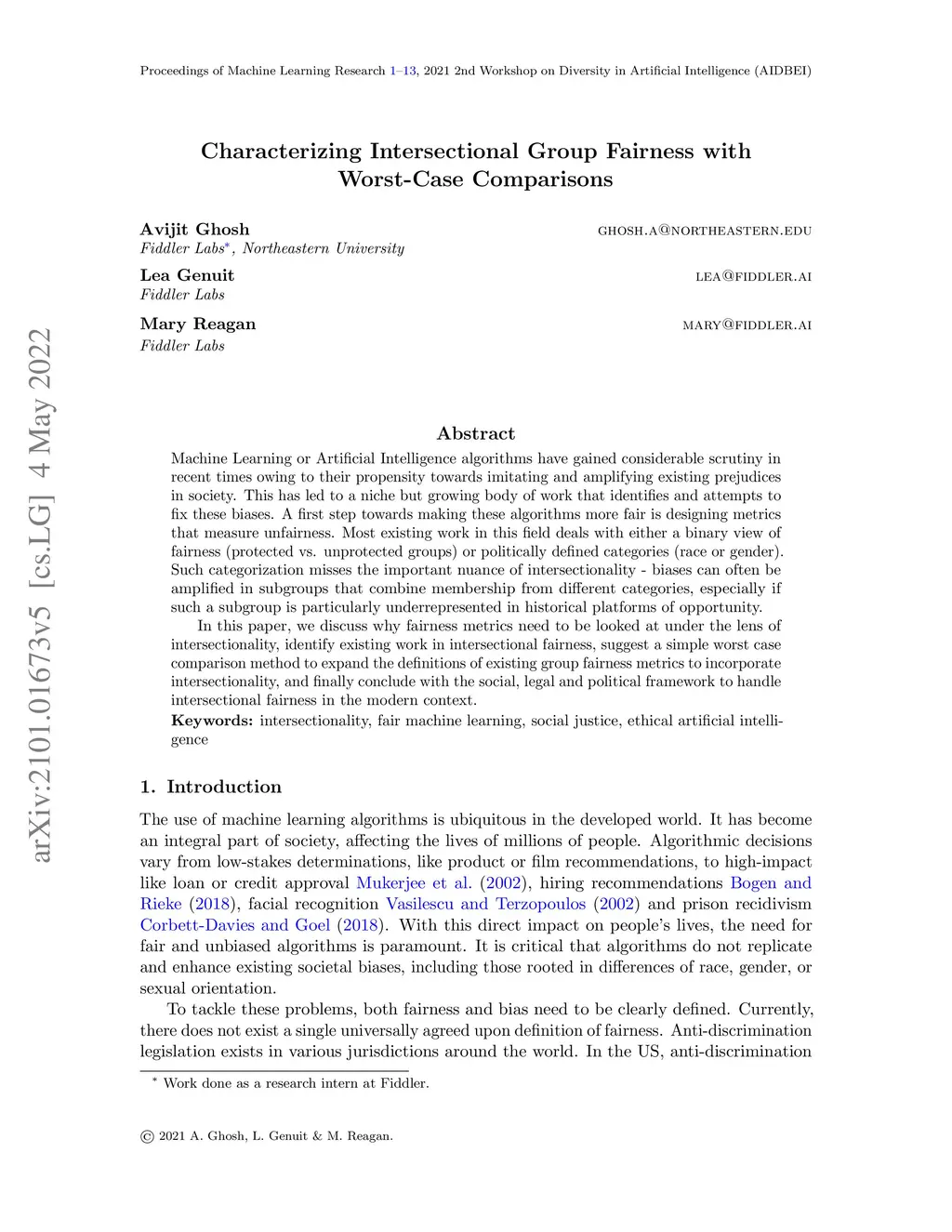 Machine Learning or Artificial Intelligence algorithms have gained considerable scrutiny in recent times owing to their propensity towards imitating and amplifying existing prejudices in society. This has led to a niche but growing body of work that identifies and attempts to fix these biases. A first step towards making these algorithms more fair is designing metrics that measure unfairness. Most existing work in this field deals with either a binary view of fairness (protected vs. unprotected groups) or politically defined categories (race or gender). Such categorization misses the important nuance of intersectionality - biases can often be amplified in subgroups that combine membership from different categories, especially if such a subgroup is particularly underrepresented in historical platforms of opportunity. In this paper, we discuss why fairness metrics need to be looked at under the lens of intersectionality, identify existing work in intersectional fairness, suggest a simple worst case comparison method to expand the definitions of existing group fairness metrics to incorporate intersectionality, and finally conclude with the social, legal and political framework to handle intersectional fairness in the modern context.