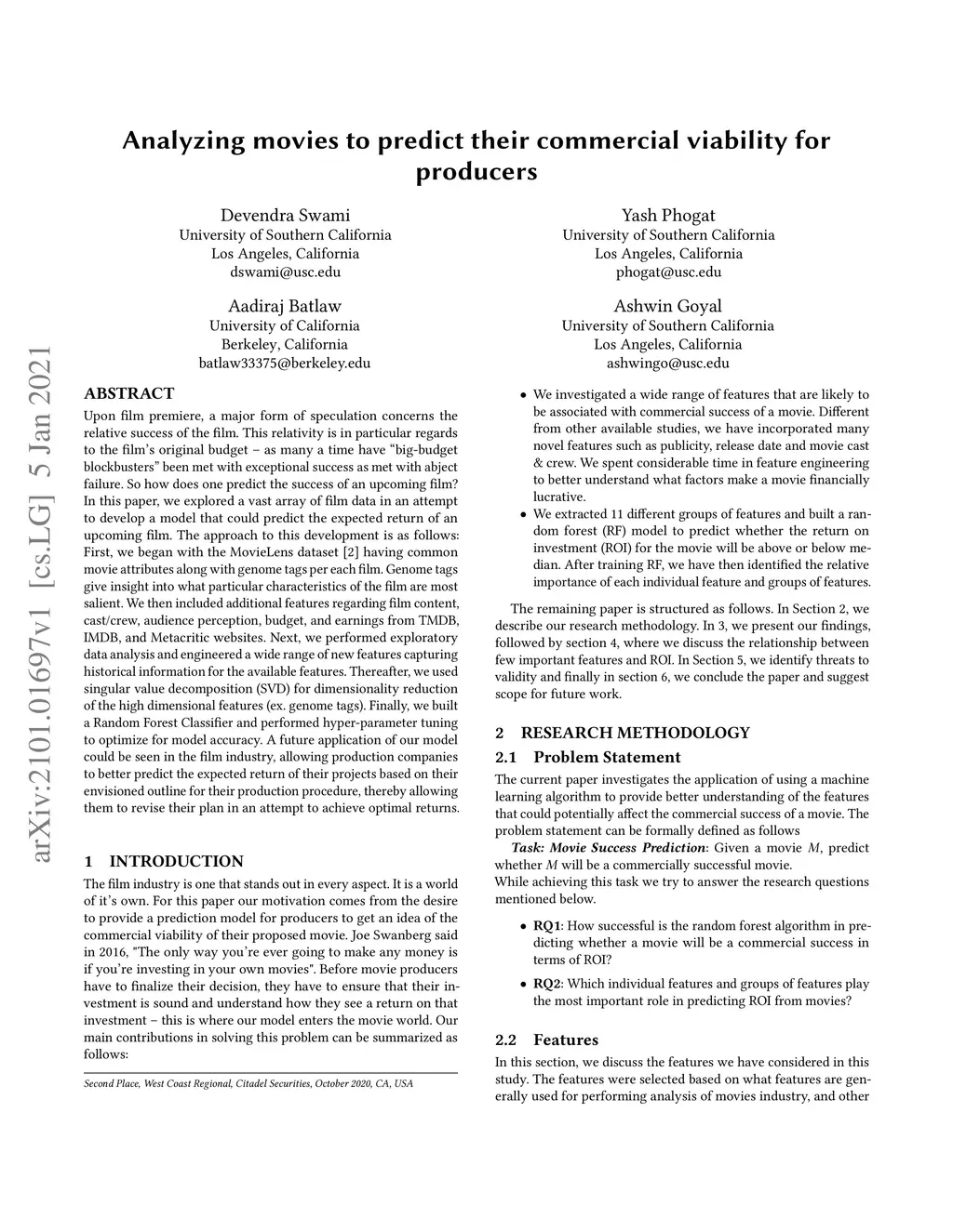 Analyzing movies to predict their commercial viability for producers