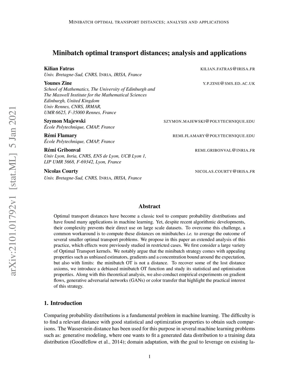 Minibatch optimal transport distances; analysis and applications