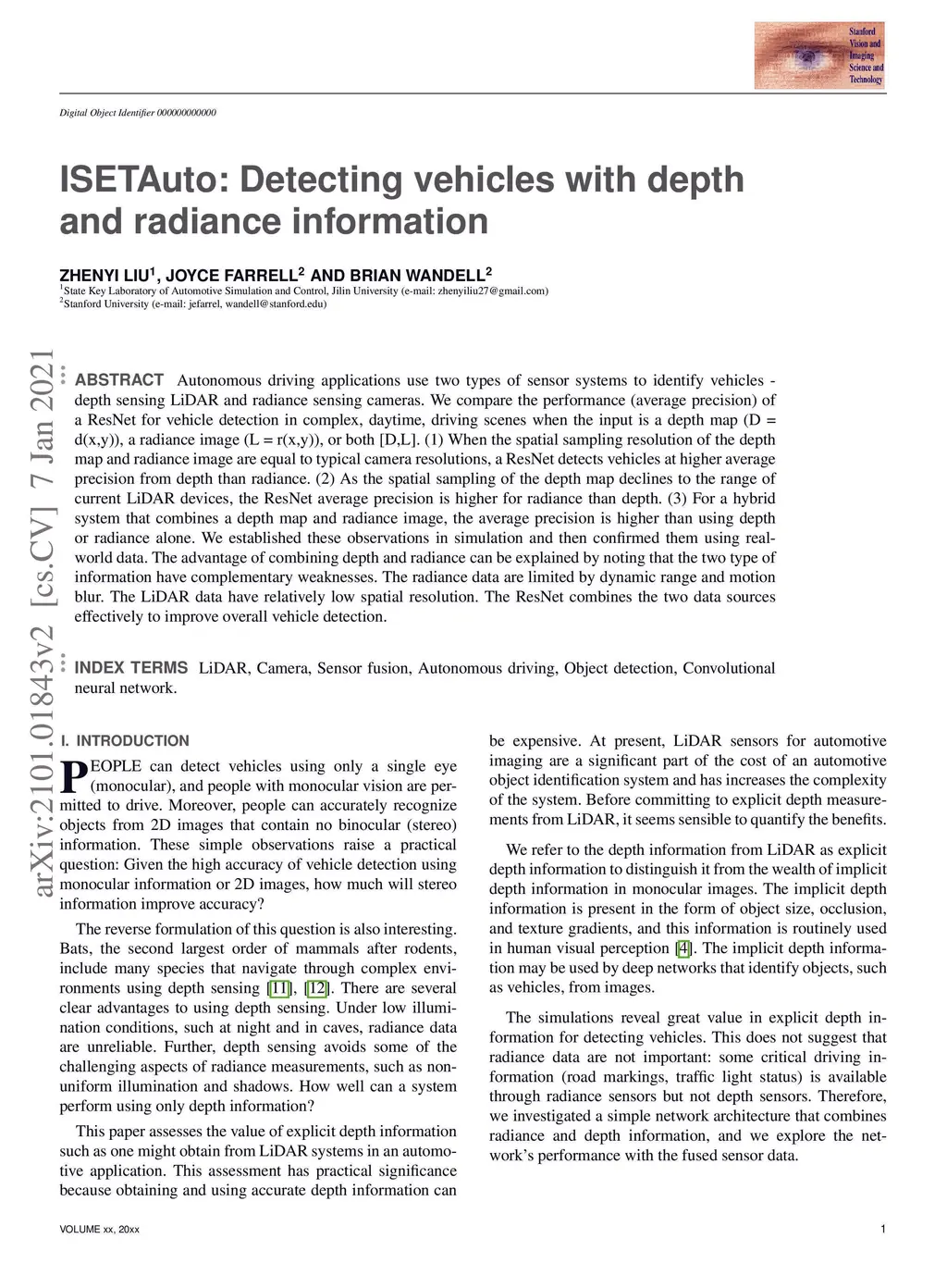 Autonomous driving applications use two types of sensor systems to identify vehicles - depth sensing LiDAR and radiance sensing cameras. We compare the performance (average precision) of a ResNet for vehicle detection in complex, daytime, driving scenes when the input is a depth map (D = d(x,y)), a radiance image (L = r(x,y)), or both [D,L]. (1) When the spatial sampling resolution of the depth map and radiance image are equal to typical camera resolutions, a ResNet detects vehicles at higher average precision from depth than radiance. (2) As the spatial sampling of the depth map declines to the range of current LiDAR devices, the ResNet average precision is higher for radiance than depth. (3) For a hybrid system that combines a depth map and radiance image, the average precision is higher than using depth or radiance alone. We established these observations in simulation and then confirmed them using realworld data. The advantage of combining depth and radiance can be explained by noting that the two type of information have complementary weaknesses. The radiance data are limited by dynamic range and motion blur. The LiDAR data have relatively low spatial resolution. The ResNet combines the two data sources effectively to improve overall vehicle detection.