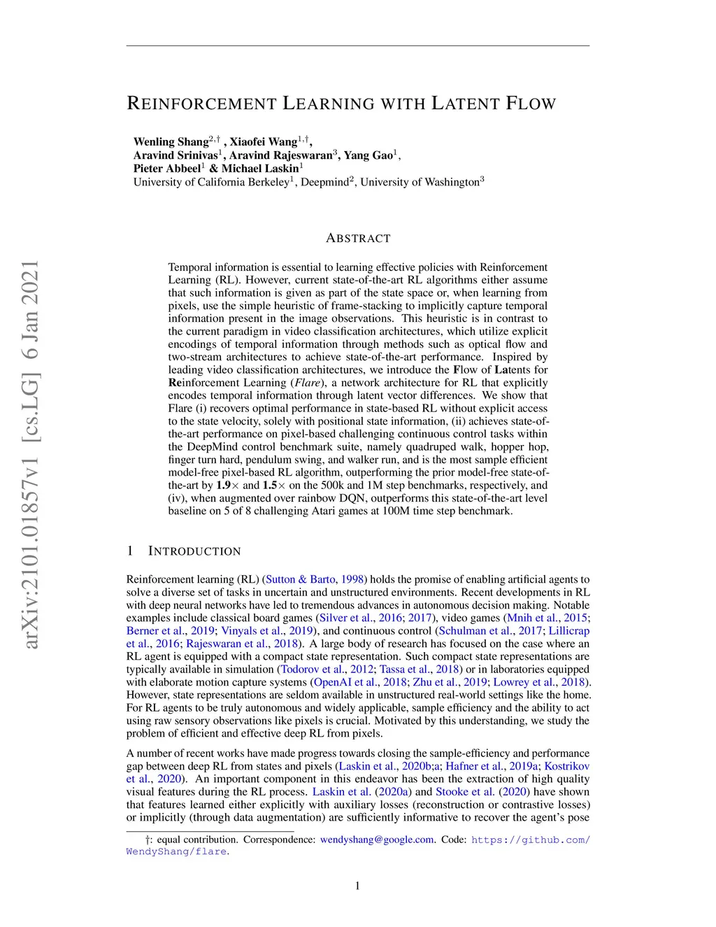 Reinforcement Learning with Latent Flow