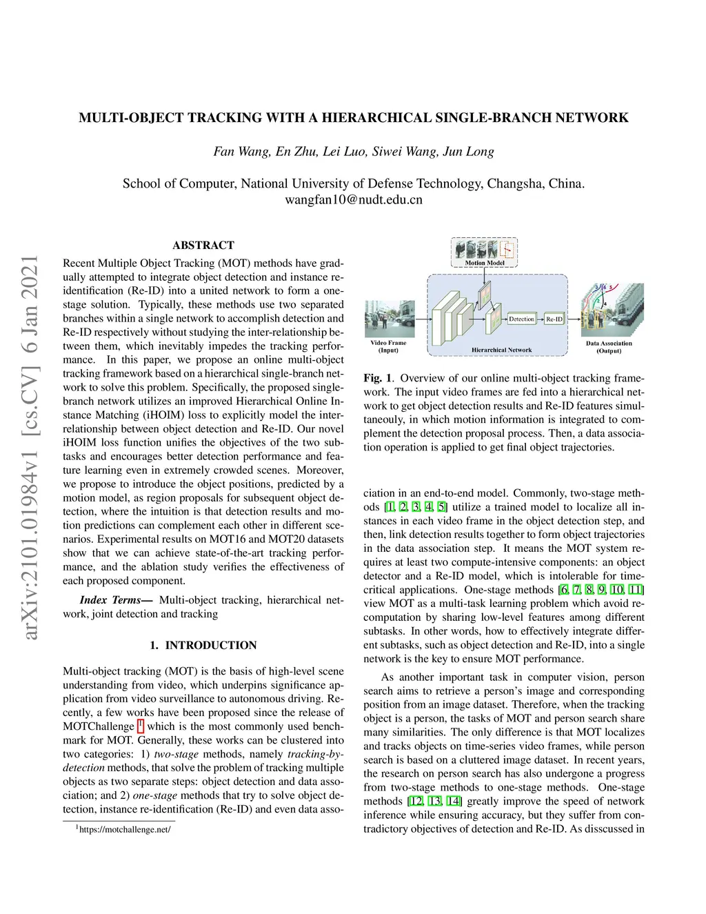 Multi-object Tracking with a Hierarchical Single-branch Network