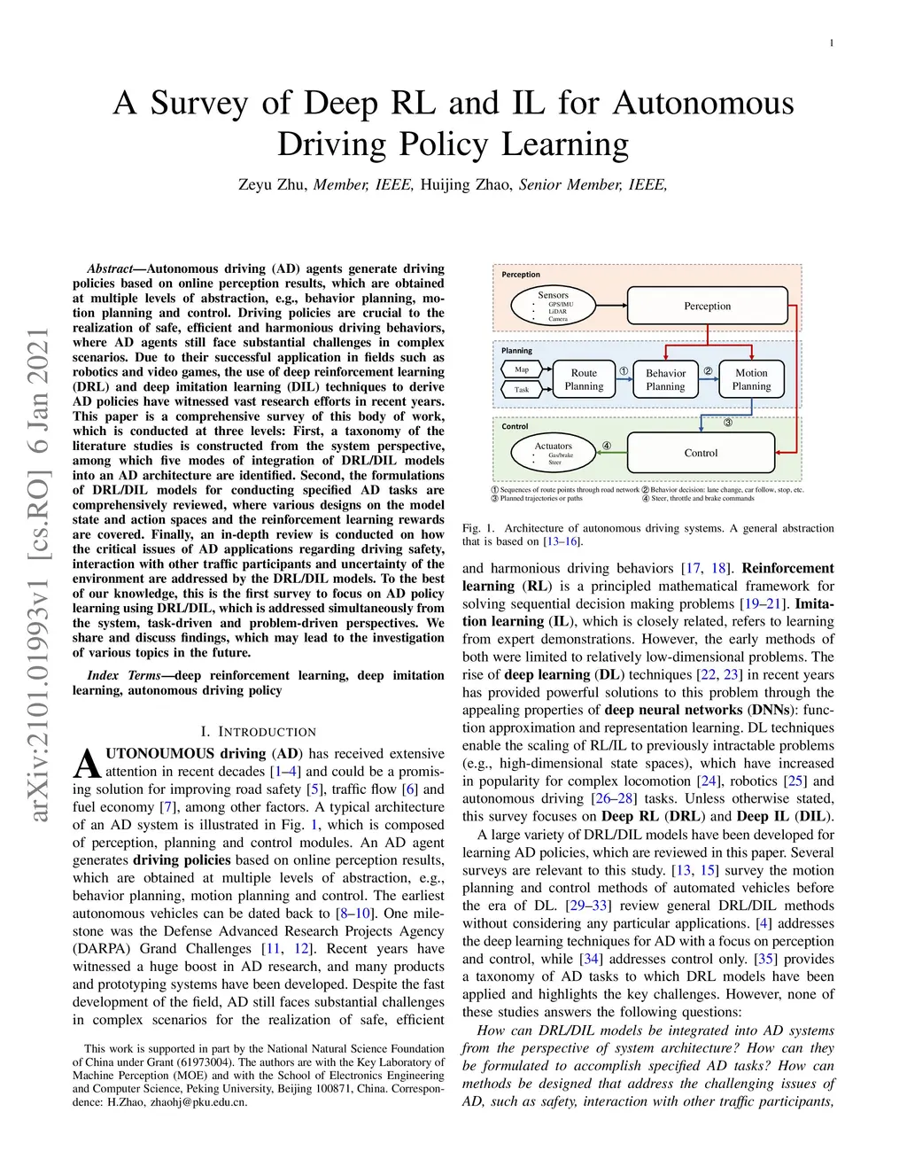A Survey of Deep RL and IL for Autonomous Driving Policy Learning