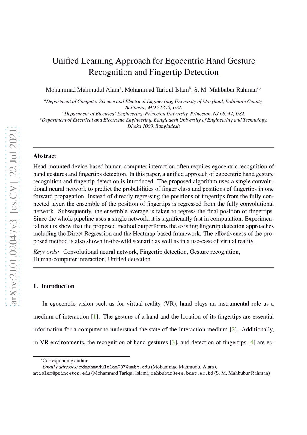 Unified Learning Approach for Egocentric Hand Gesture Recognition and