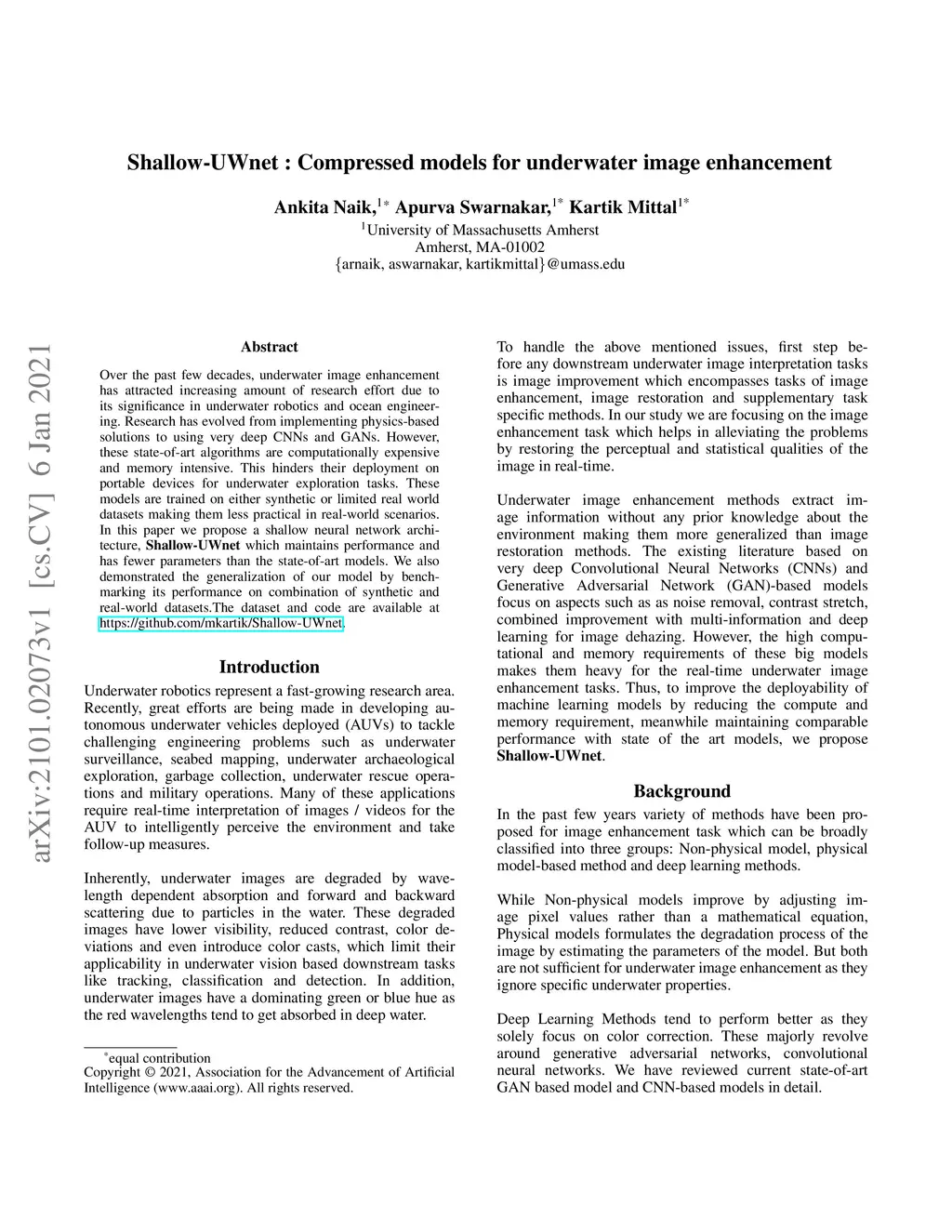 Shallow-UWnet : Compressed Model for Underwater Image Enhancement