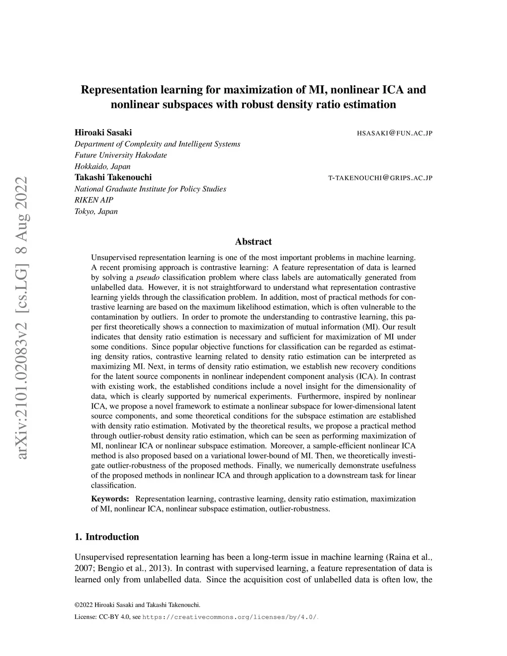 Representation learning for maximization of MI, nonlinear ICA and
