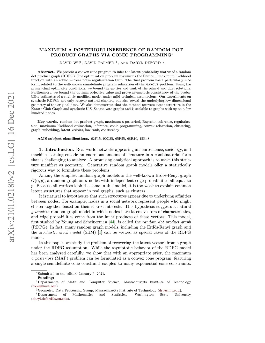 Maximum a Posteriori Inference of Random Dot Product Graphs via Conic
