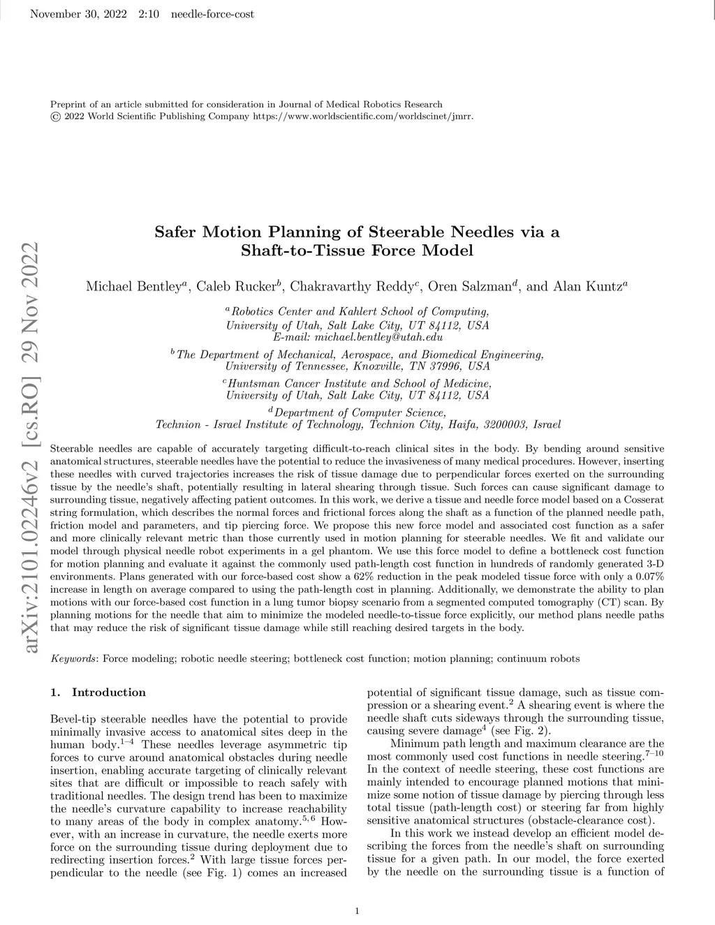 Safer Motion Planning of Steerable Needles via a Shaft-to-Tissue Force