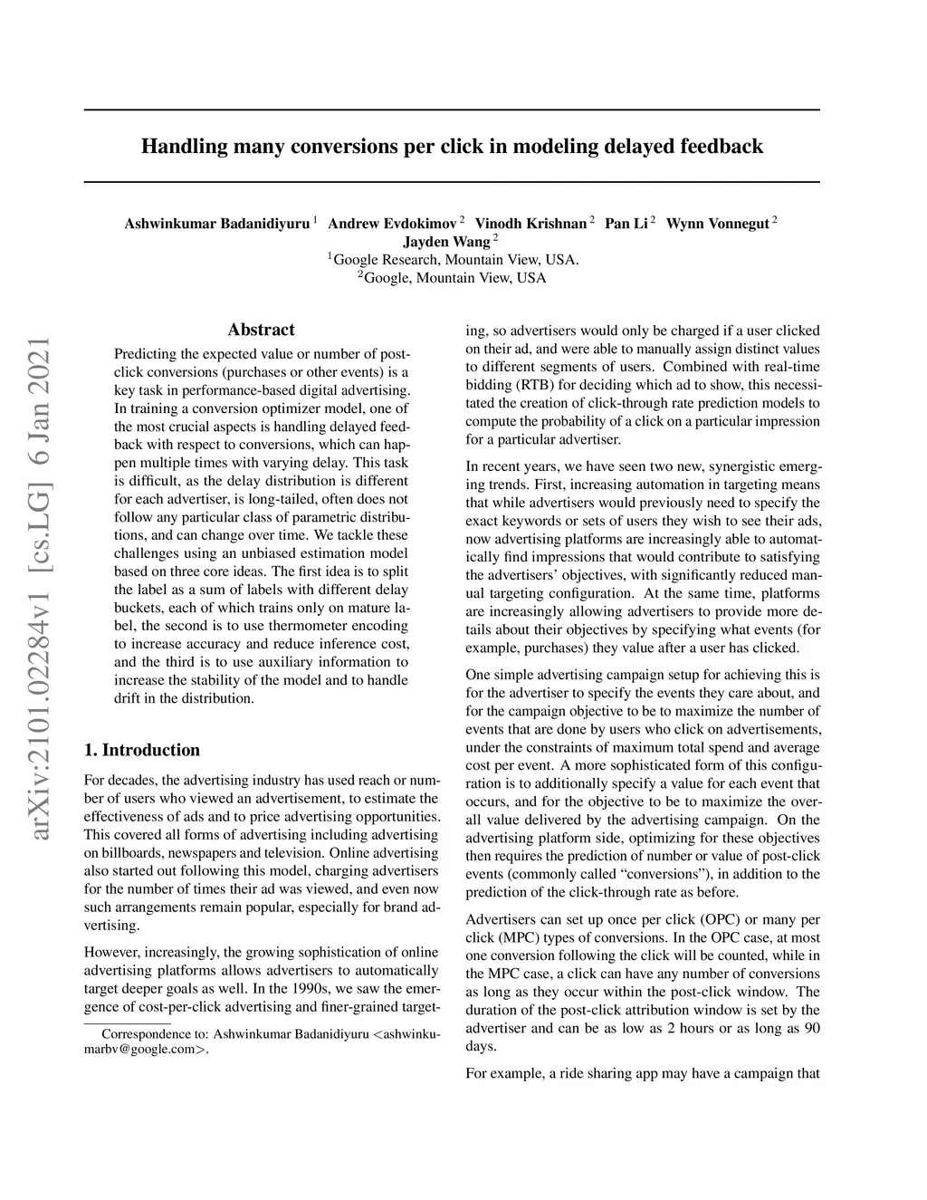 Handling many conversions per click in modeling delayed feedback