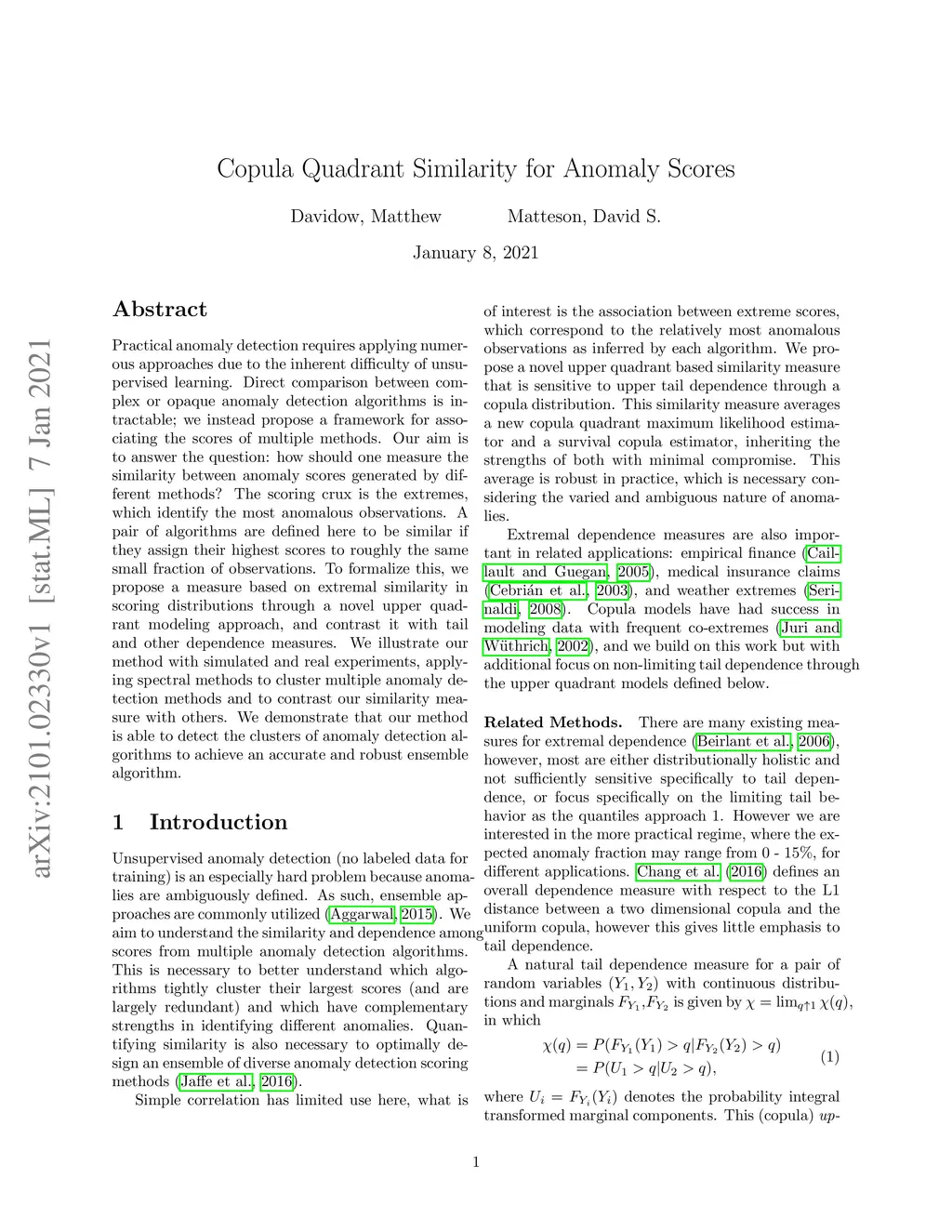 Practical anomaly detection requires applying numerous approaches due to the inherent difficulty of unsupervised learning. Direct comparison between complex or opaque anomaly detection algorithms is intractable; we instead propose a framework for associating the scores of multiple methods. Our aim is to answer the question: how should one measure the similarity between anomaly scores generated by different methods? The scoring crux is the extremes, which identify the most anomalous observations. A pair of algorithms are defined here to be similar if they assign their highest scores to roughly the same small fraction of observations. To formalize this, we propose a measure based on extremal similarity in scoring distributions through a novel upper quadrant modeling approach, and contrast it with tail and other dependence measures. We illustrate our method with simulated and real experiments, applying spectral methods to cluster multiple anomaly detection methods and to contrast our similarity measure with others. We demonstrate that our method is able to detect the clusters of anomaly detection algorithms to achieve an accurate and robust ensemble algorithm.