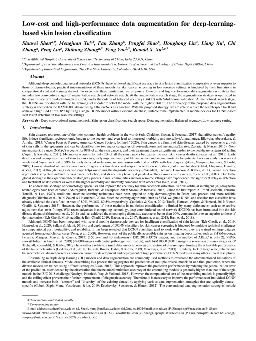 Although deep convolutional neural networks (DCNNs) have achieved significant accuracy in skin lesion classification comparable or even superior to those of dermatologists, practical implementation of these models for skin cancer screening in low resource settings is hindered by their limitations in computational cost and training dataset. To overcome these limitations, we propose a low-cost and high-performance data augmentation strategy that includes two consecutive stages of augmentation search and network search. At the augmentation search stage, the augmentation strategy is optimized in the search space of Low-Cost-Augment (LCA) under the criteria of balanced accuracy (BACC) with 5-fold cross validation. At the network search stage, the DCNNs are fine-tuned with the full training set in order to select the model with the highest BACC. The efficiency of the proposed data augmentation strategy is verified on the HAM10000 dataset using EfficientNets as a baseline. With the proposed strategy, we are able to reduce the search space to 60 and achieve a high BACC of 0.853 by using a single DCNN model without external database, suitable to be implemented in mobile devices for DCNN-based skin lesion detection in low resource settings.