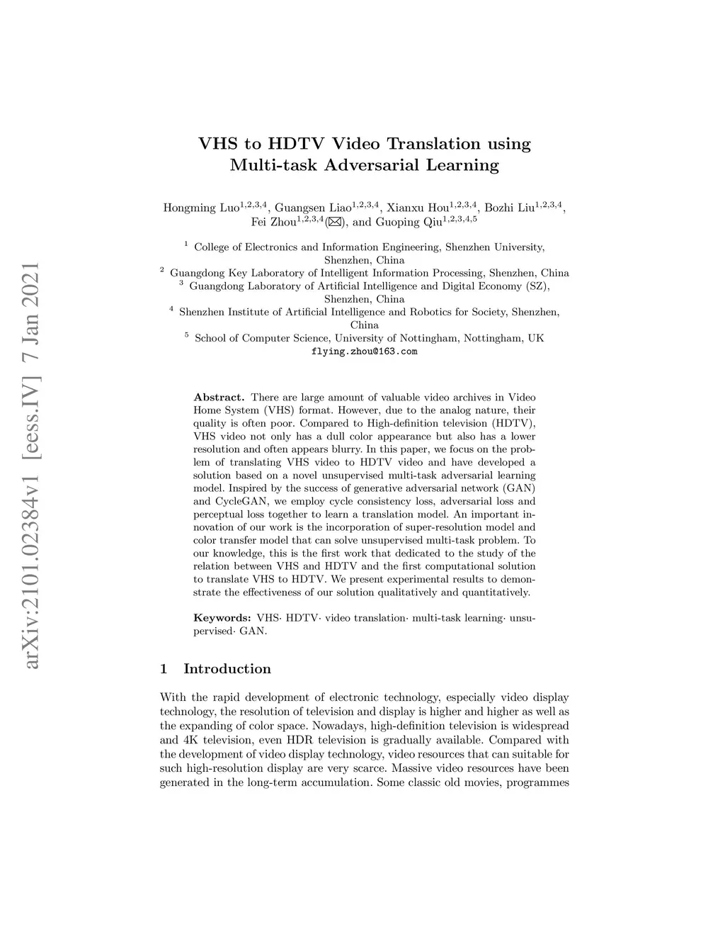 VHS to HDTV Video Translation using Multi-task Adversarial Learning