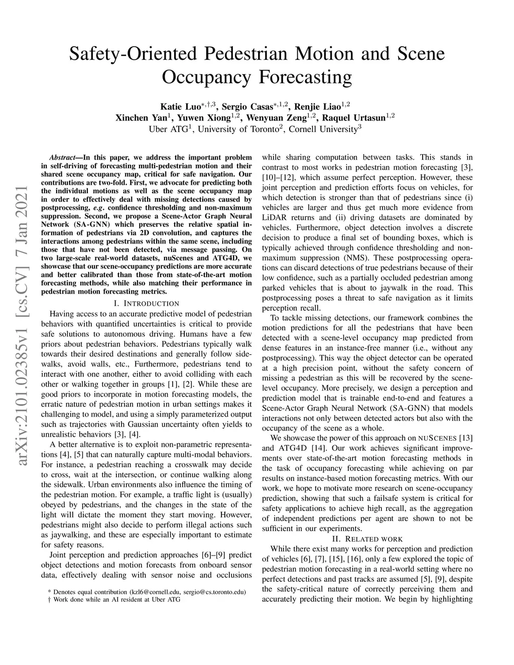Safety-Oriented Pedestrian Motion and Scene Occupancy Forecasting