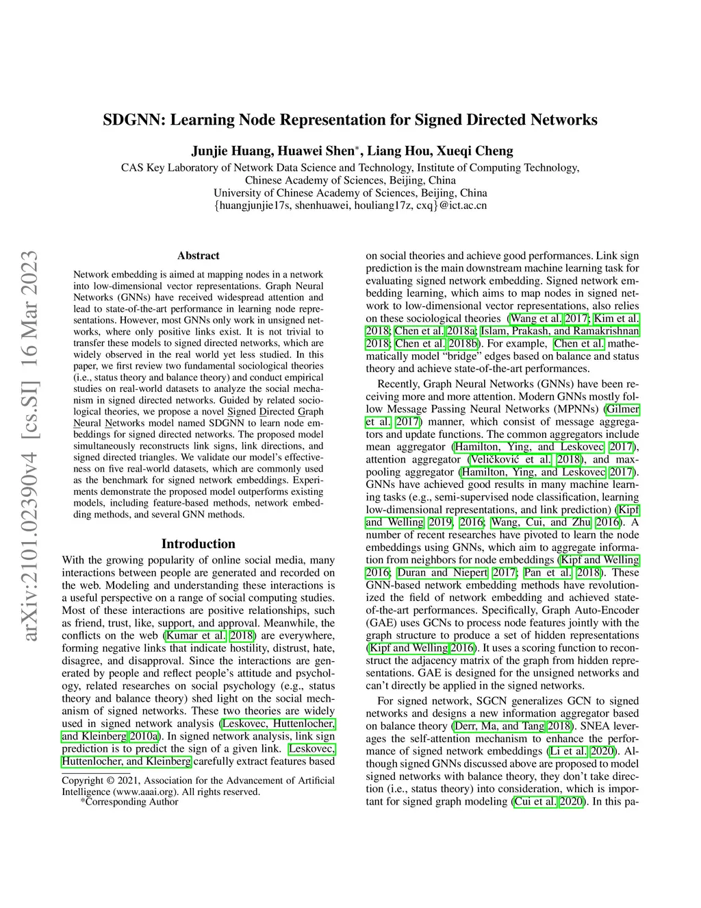 SDGNN: Learning Node Representation for Signed Directed Networks
