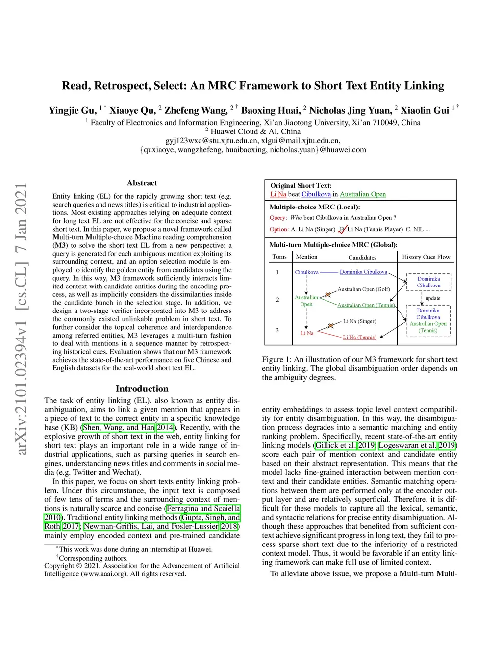 Read, Retrospect, Select: An MRC Framework to Short Text Entity Linking