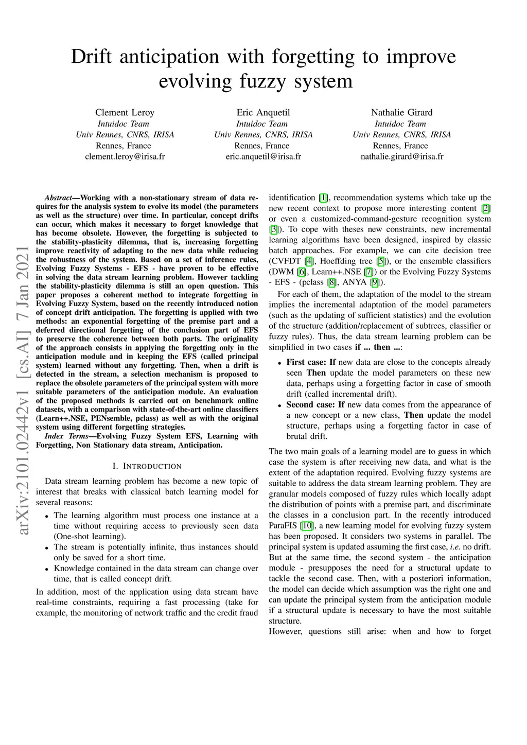 Drift anticipation with forgetting to improve evolving fuzzy system