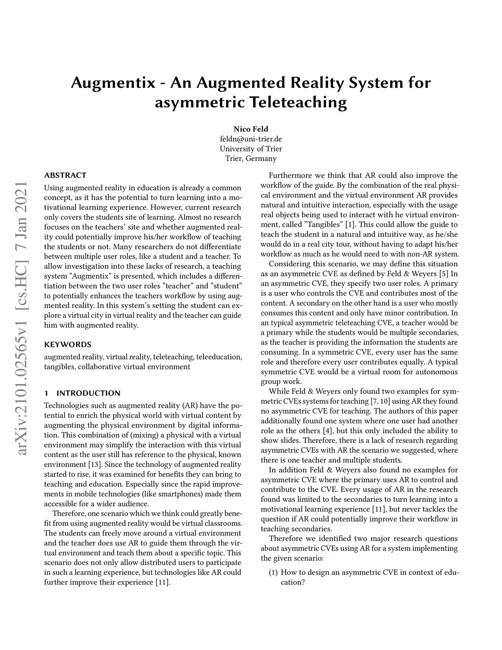 Augmentix -- An Augmented Reality System for asymmetric Teleteaching