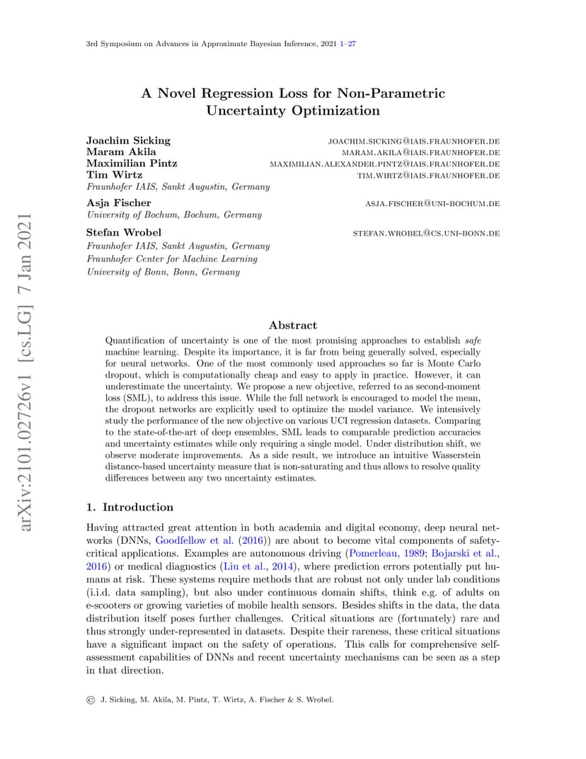 A Novel Regression Loss for Non-Parametric Uncertainty Optimization