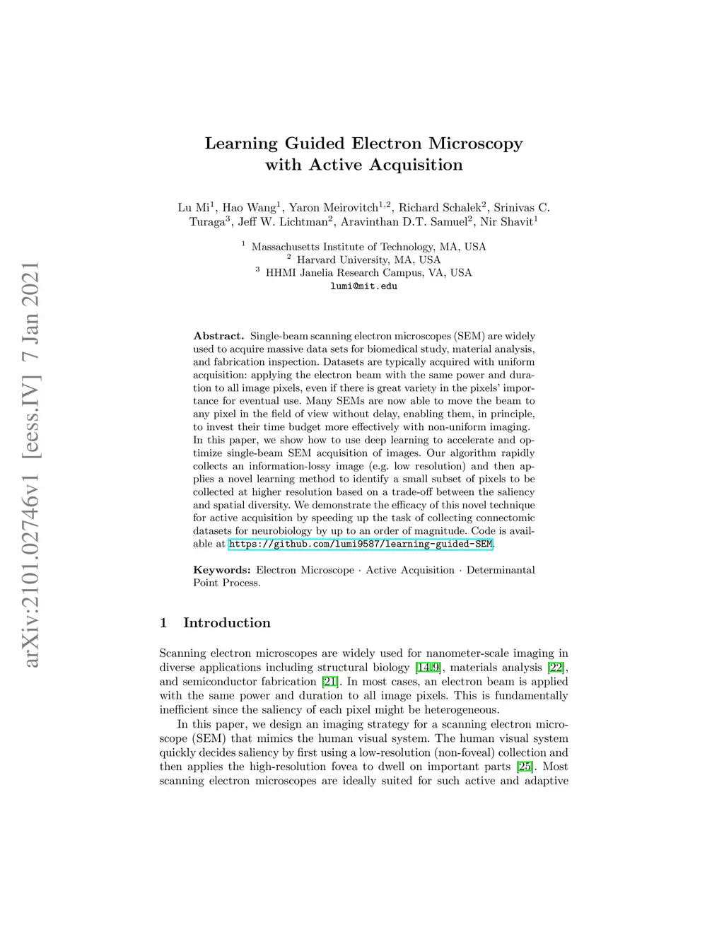 Single-beam scanning electron microscopes (SEM) are widely used to acquire massive data sets for biomedical study, material analysis, and fabrication inspection. Datasets are typically acquired with uniform acquisition: applying the electron beam with the same power and duration to all image pixels, even if there is great variety in the pixels' importance for eventual use. Many SEMs are now able to move the beam to any pixel in the field of view without delay, enabling them, in principle, to invest their time budget more effectively with non-uniform imaging. In this paper, we show how to use deep learning to accelerate and optimize single-beam SEM acquisition of images. Our algorithm rapidly collects an information-lossy image (e.g. low resolution) and then applies a novel learning method to identify a small subset of pixels to be collected at higher resolution based on a trade-off between the saliency and spatial diversity. We demonstrate the efficacy of this novel technique for active acquisition by speeding up the task of collecting connectomic datasets for neurobiology by up to an order of magnitude.