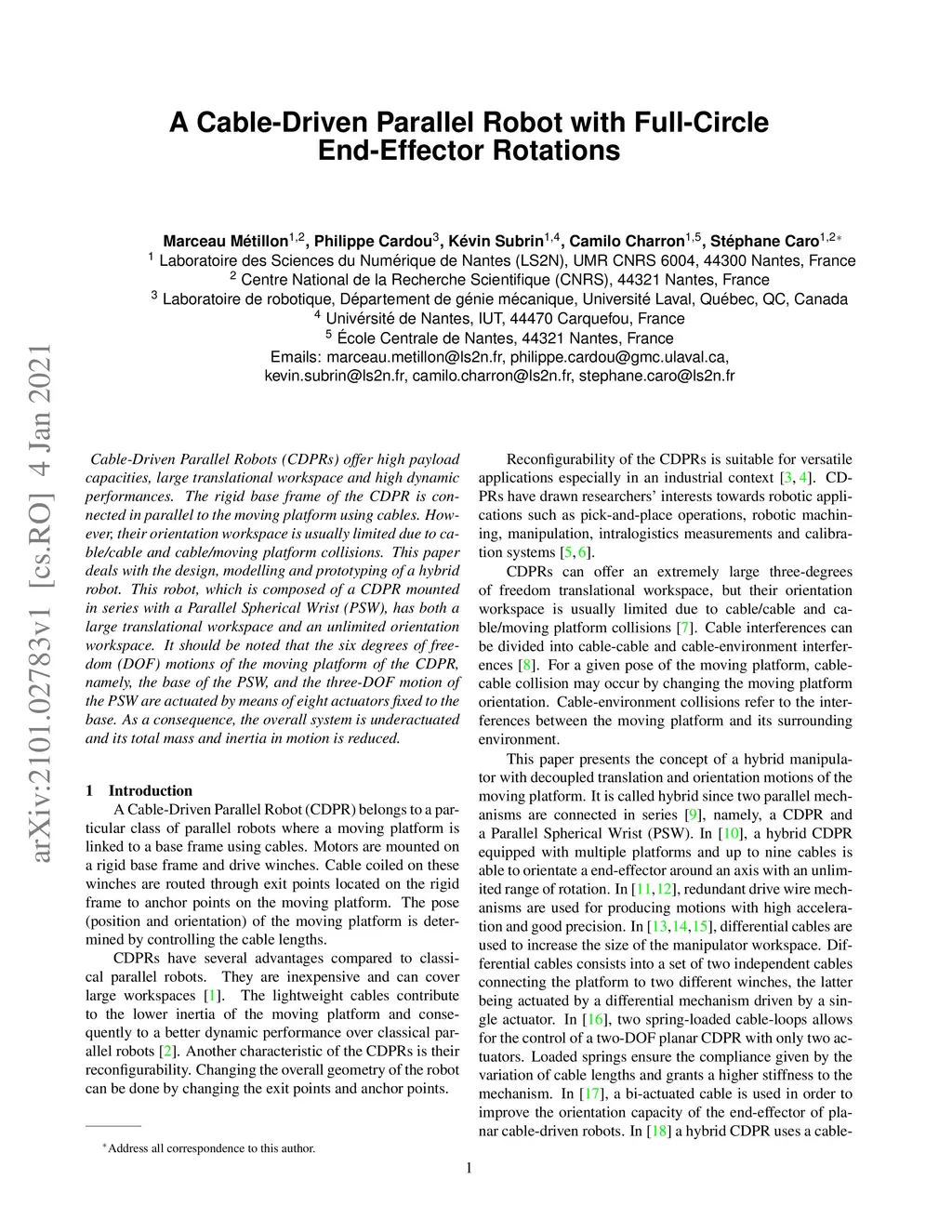 A Cable-Driven Parallel Robot with Full-Circle End-Effector Rotations