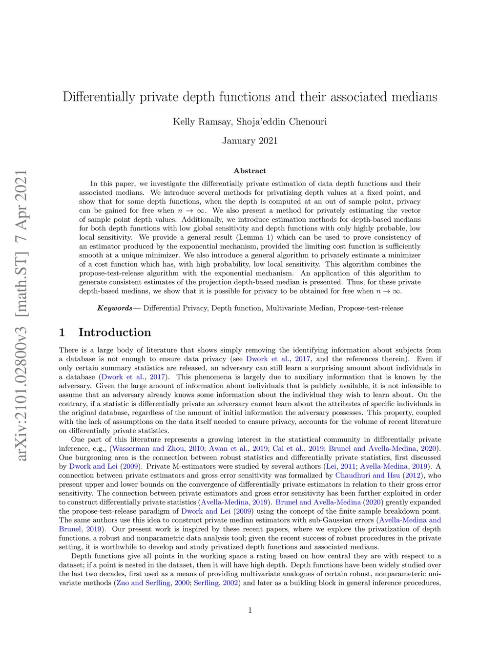 In this paper, we investigate the differentially private estimation of data depth functions and their associated medians. We introduce several methods for privatizing depth values at a fixed point, and show that for some depth functions, when the depth is computed at an out of sample point, privacy can be gained for free when . We also present a method for privately estimating the vector of sample point depth values. Additionally, we introduce estimation methods for depth-based medians for both depth functions with low global sensitivity and depth functions with only highly probable, low local sensitivity. We provide a general result (Lemma 1) which can be used to prove consistency of an estimator produced by the exponential mechanism, provided the limiting cost function is sufficiently smooth at a unique minimizer. We also introduce a general algorithm to privately estimate a minimizer of a cost function which has, with high probability, low local sensitivity. This algorithm combines the propose-test-release algorithm with the exponential mechanism. An application of this algorithm to generate consistent estimates of the projection depth-based median is presented. Thus, for these private depth-based medians, we show that it is possible for privacy to be obtained for free when .