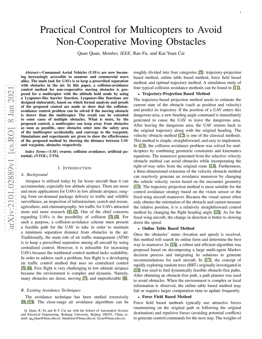Practical Control for Multicopters to Avoid Non-Cooperative Moving