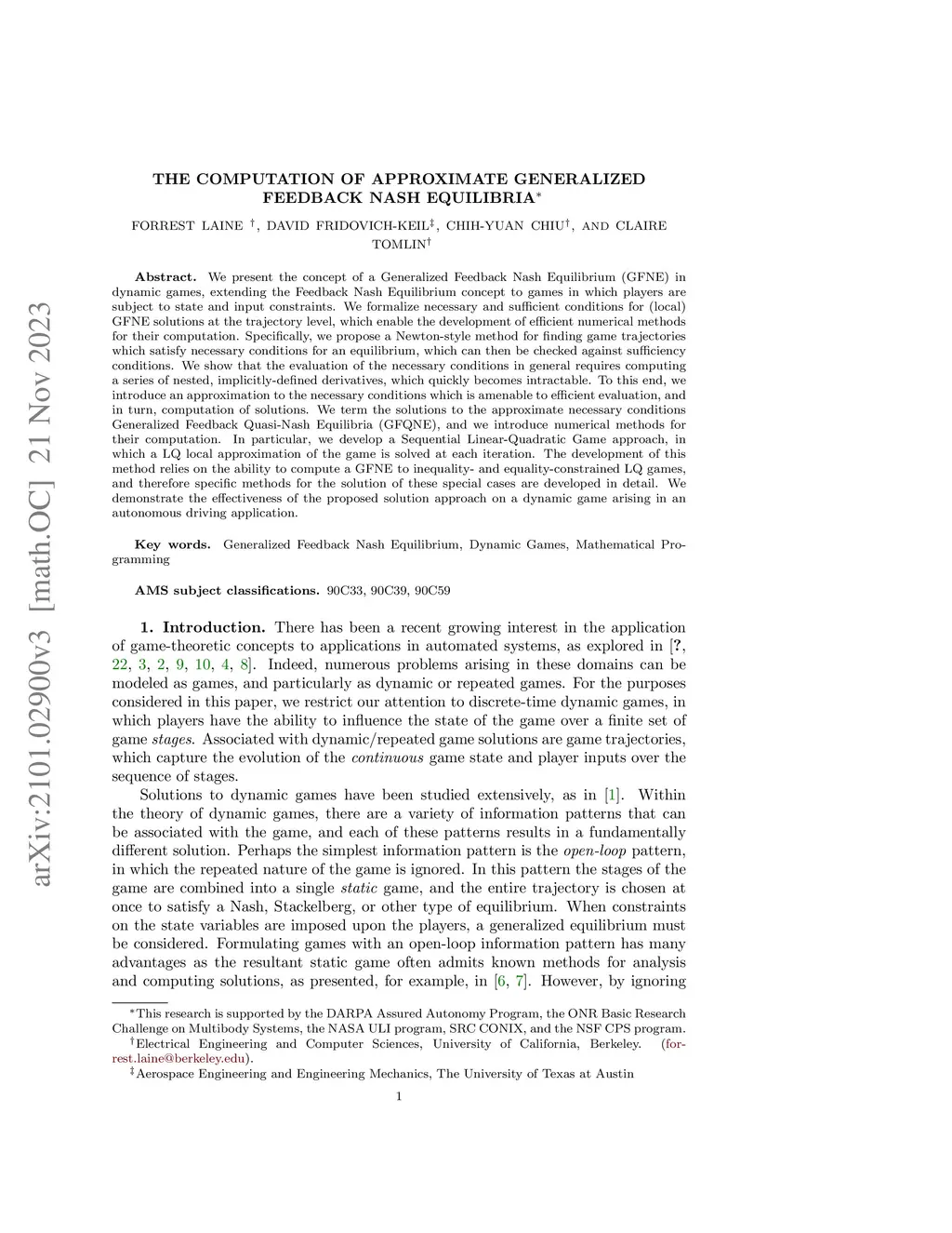 We present the concept of a Generalized Feedback Nash Equilibrium (GFNE) in dynamic games, extending the Feedback Nash Equilibrium concept to games in which players are subject to state and input constraints. We formalize necessary and sufficient conditions for (local) GFNE solutions at the trajectory level, which enable the development of efficient numerical methods for their computation. Specifically, we propose a Newton-style method for finding game trajectories which satisfy necessary conditions for an equilibrium, which can then be checked against sufficiency conditions. We show that the evaluation of the necessary conditions in general requires computing a series of nested, implicitly-defined derivatives, which quickly becomes intractable. To this end, we introduce an approximation to the necessary conditions which is amenable to efficient evaluation, and in turn, computation of solutions. We term the solutions to the approximate necessary conditions Generalized Feedback Quasi-Nash Equilibria (GFQNE), and we introduce numerical methods for their computation. In particular, we develop a Sequential Linear-Quadratic Game approach, in which a LQ local approximation of the game is solved at each iteration. The development of this method relies on the ability to compute a GFNE to inequality- and equality-constrained LQ games, and therefore specific methods for the solution of these special cases are developed in detail. We demonstrate the effectiveness of the proposed solution approach on a dynamic game arising in an autonomous driving application.