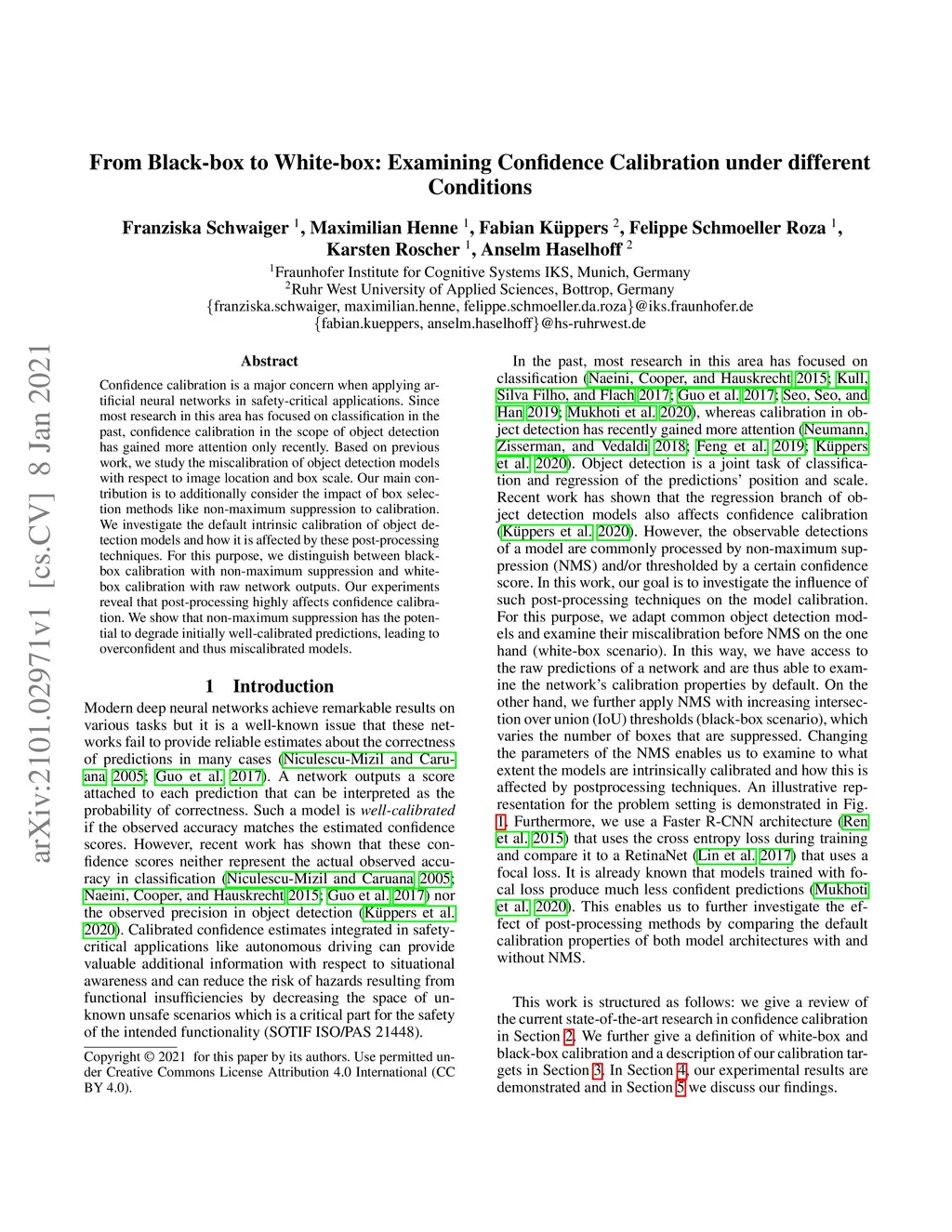 Confidence calibration is a major concern when applying artificial neural networks in safety-critical applications. Since most research in this area has focused on classification in the past, confidence calibration in the scope of object detection has gained more attention only recently. Based on previous work, we study the miscalibration of object detection models with respect to image location and box scale. Our main contribution is to additionally consider the impact of box selection methods like non-maximum suppression to calibration. We investigate the default intrinsic calibration of object detection models and how it is affected by these post-processing techniques. For this purpose, we distinguish between black-box calibration with non-maximum suppression and white-box calibration with raw network outputs. Our experiments reveal that post-processing highly affects confidence calibration. We show that non-maximum suppression has the potential to degrade initially well-calibrated predictions, leading to overconfident and thus miscalibrated models.