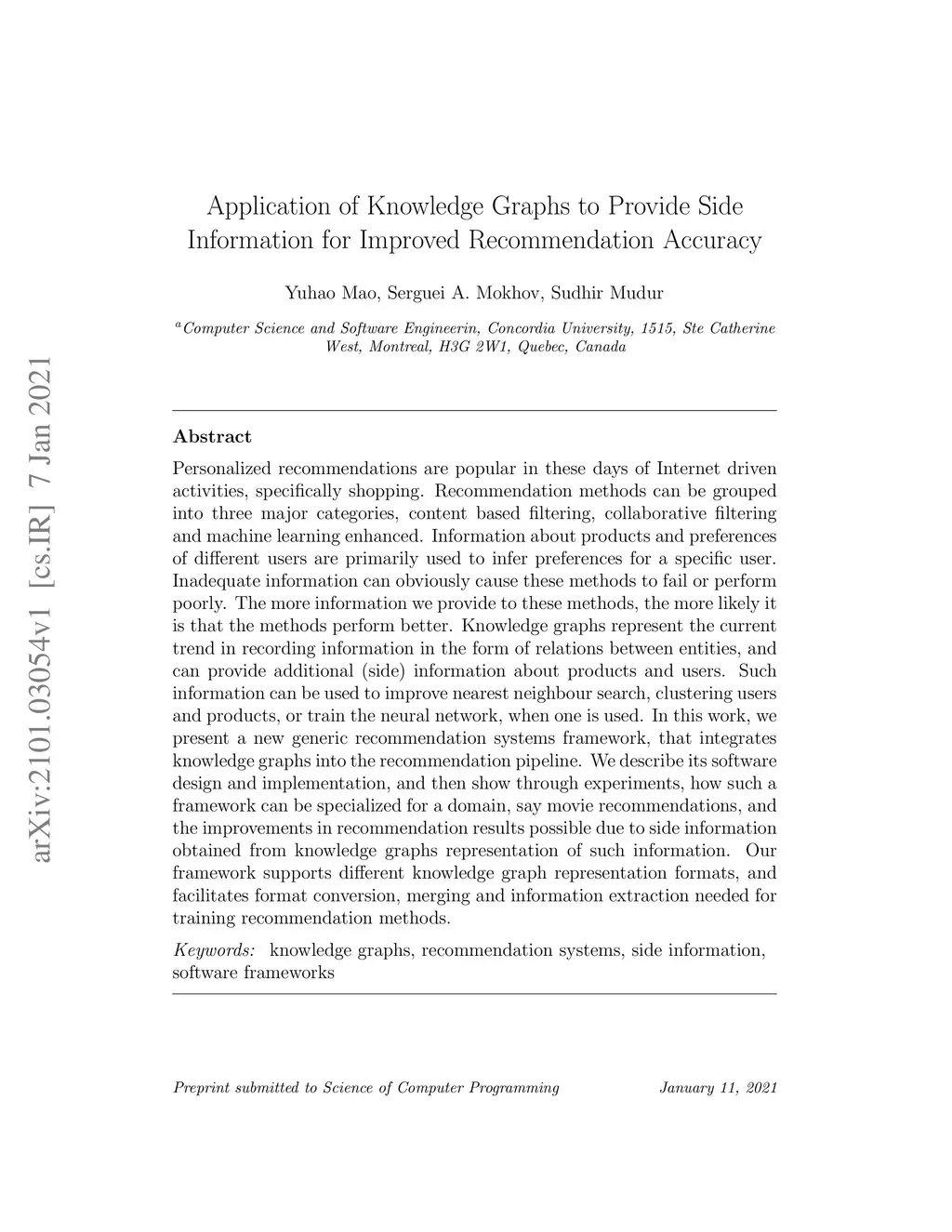 Application of Knowledge Graphs to Provide Side Information for Improved