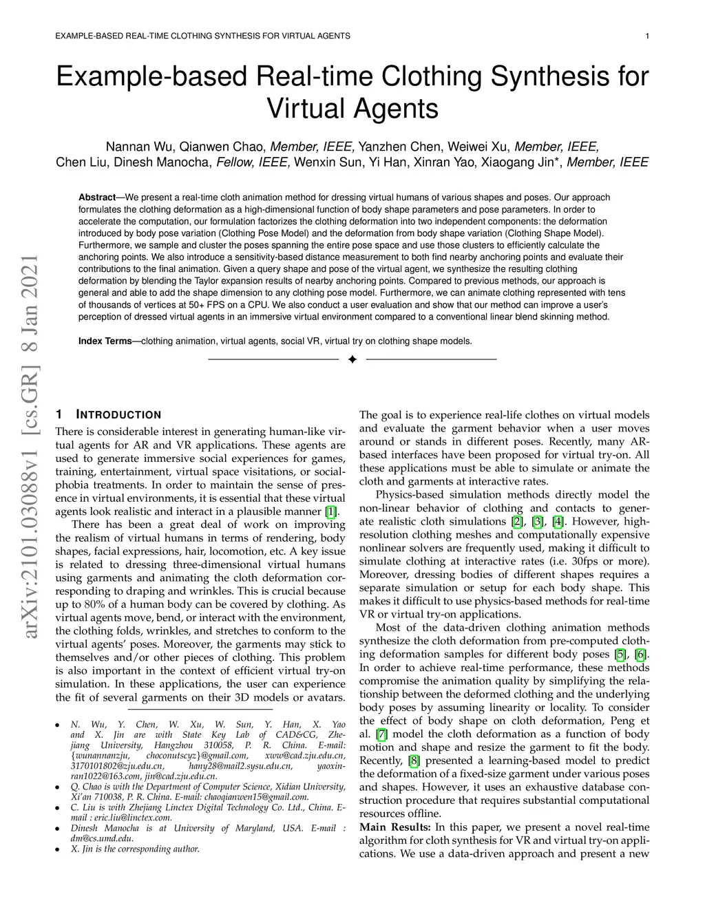 Example-based Real-time Clothing Synthesis for Virtual Agents