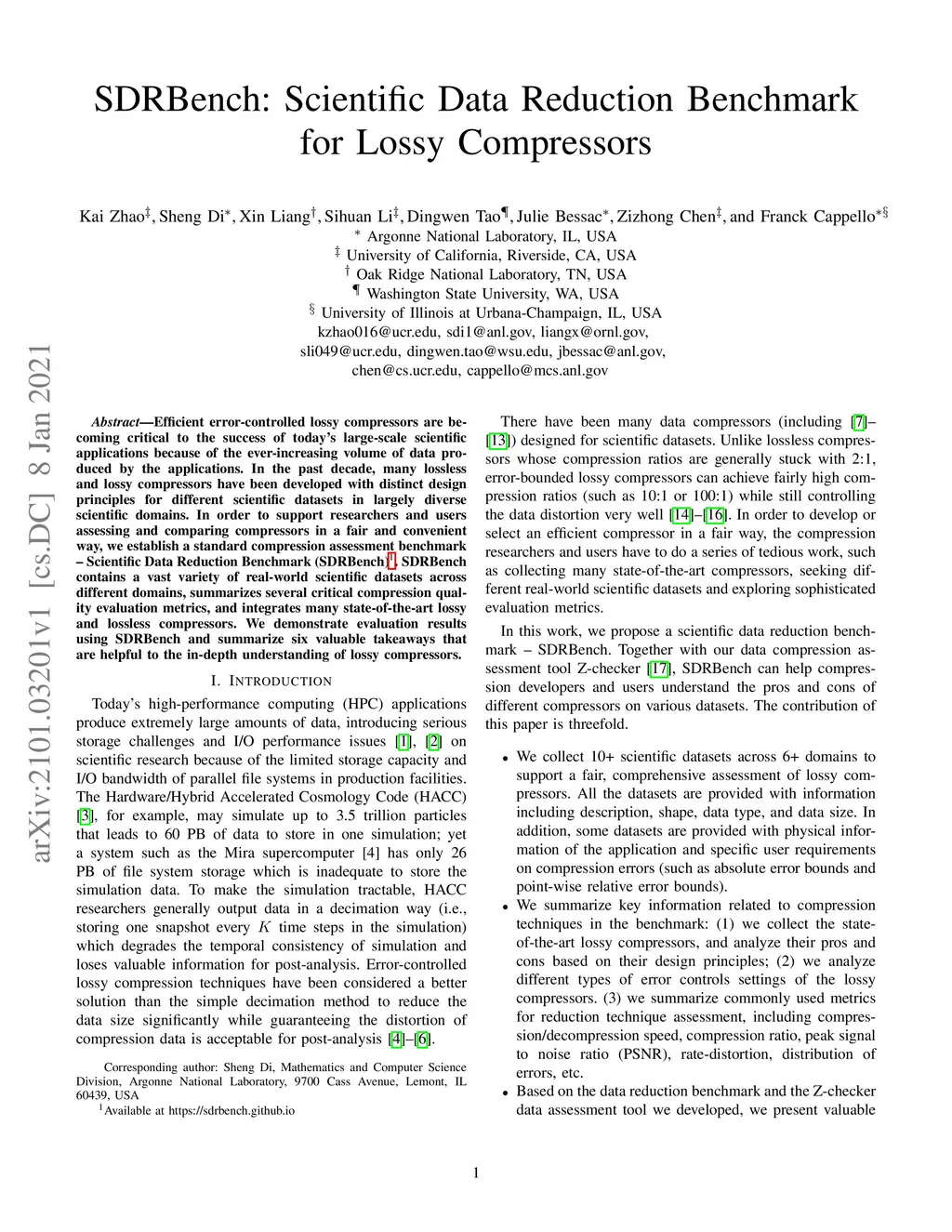 SDRBench: Scientific Data Reduction Benchmark for Lossy Compressors