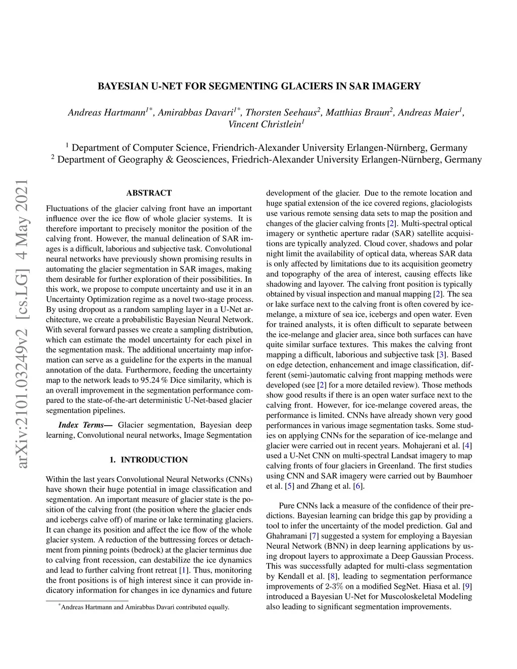 Bayesian U-Net for Segmenting Glaciers in SAR Imagery