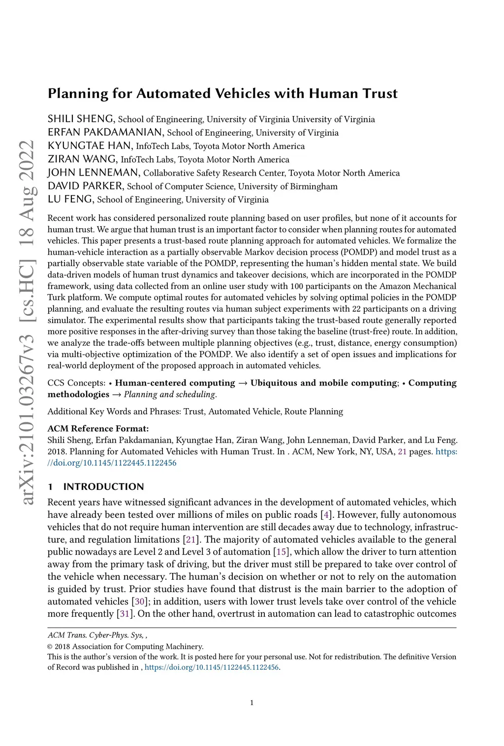 Planning for Automated Vehicles with Human Trust
