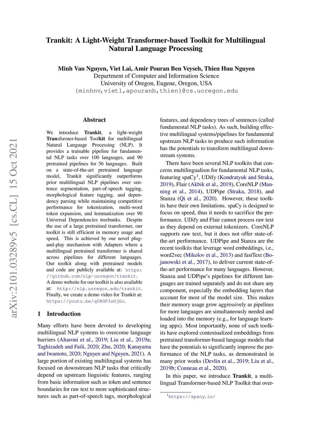 Trankit: A Light-Weight Transformer-based Toolkit for Multilingual