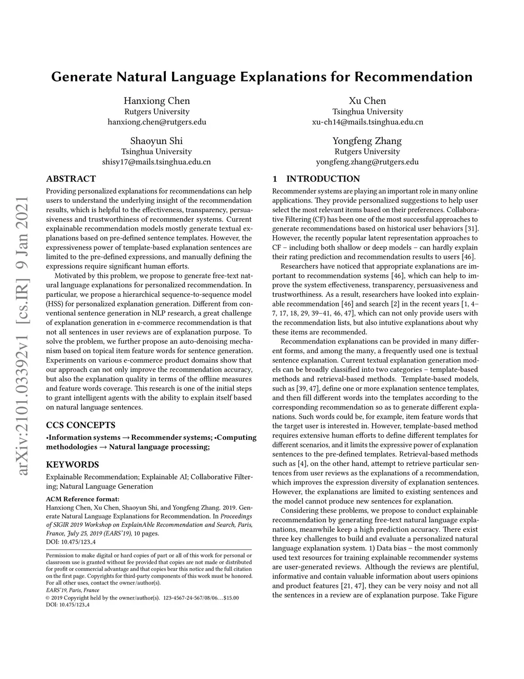 Generate Natural Language Explanations for Recommendation