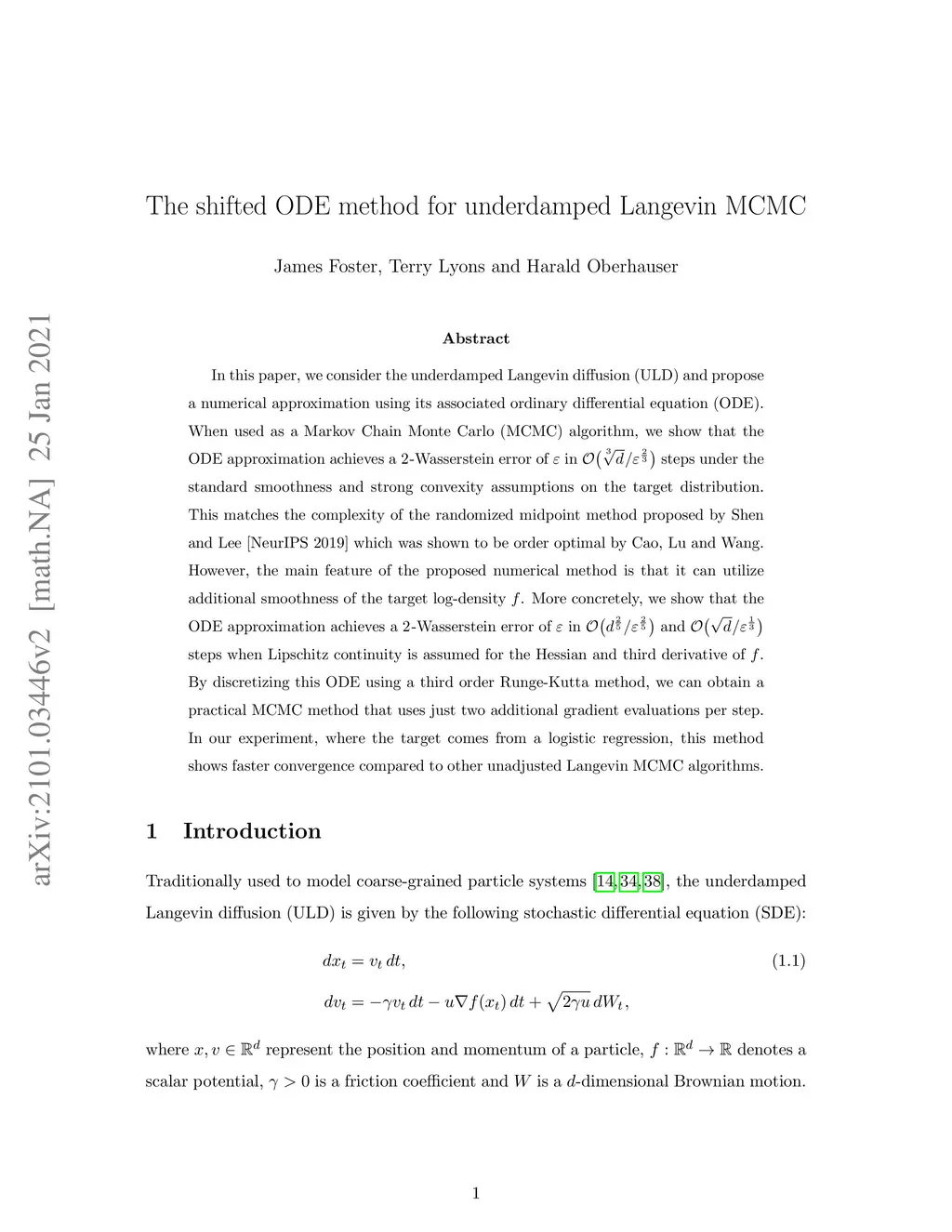In this paper, we consider the underdamped Langevin diffusion (ULD) and propose a numerical approximation using its associated ordinary differential equation (ODE). When used as a Markov Chain Monte Carlo (MCMC) algorithm, we show that the ODE approximation achieves a -Wasserstein error of in steps under the standard smoothness and strong convexity assumptions on the target distribution. This matches the complexity of the randomized midpoint method proposed by Shen and Lee [NeurIPS 2019] which was shown to be order optimal by Cao, Lu and Wang. However, the main feature of the proposed numerical method is that it can utilize additional smoothness of the target log-density . More concretely, we show that the ODE approximation achieves a -Wasserstein error of in and steps when Lipschitz continuity is assumed for the Hessian and third derivative of . By discretizing this ODE using a third order Runge-Kutta method, we can obtain a practical MCMC method that uses just two additional gradient evaluations per step. In our experiment, where the target comes from a logistic regression, this method shows faster convergence compared to other unadjusted Langevin MCMC algorithms.