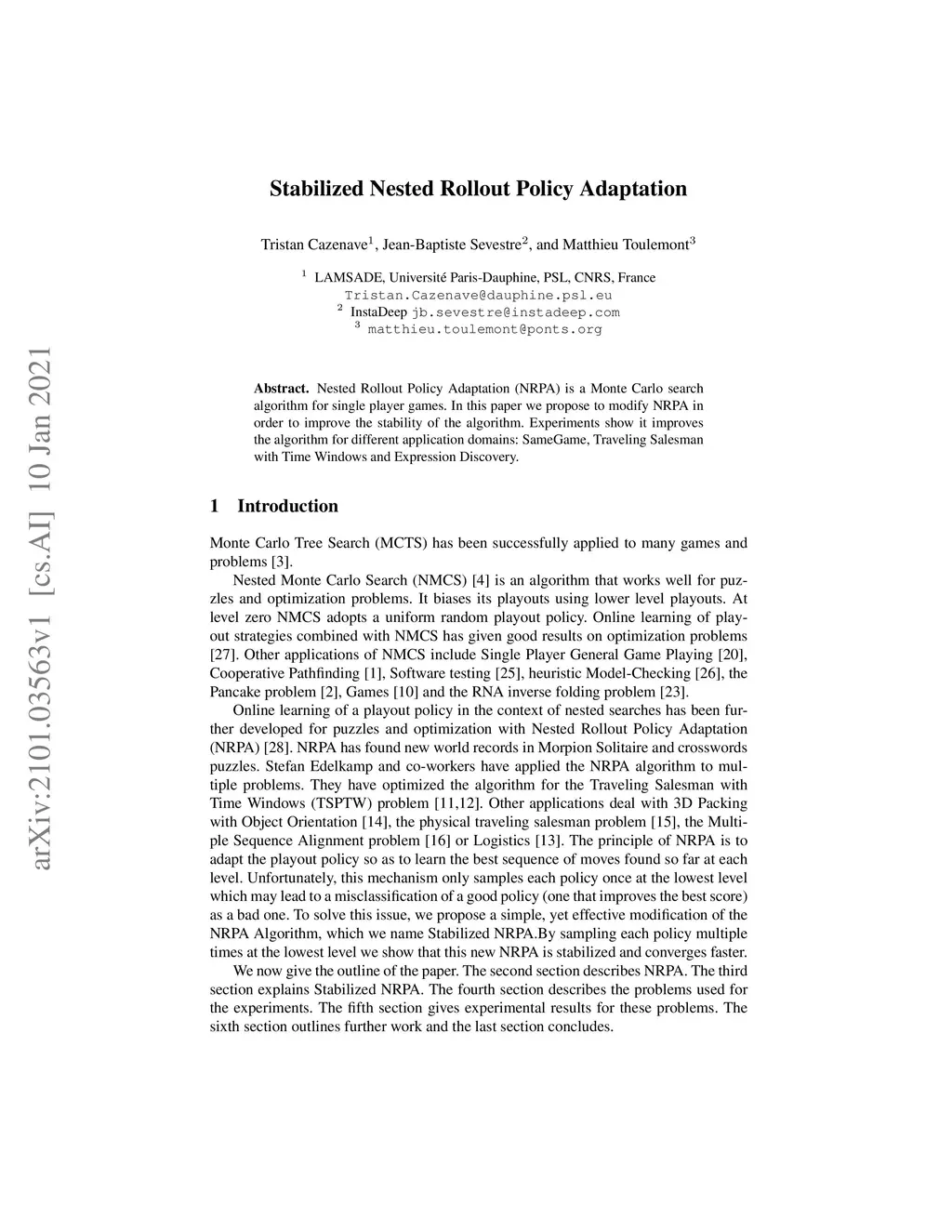 Nested Rollout Policy Adaptation (NRPA) is a Monte Carlo search algorithm for single player games. In this paper we propose to modify NRPA in order to improve the stability of the algorithm. Experiments show it improves the algorithm for different application domains: SameGame, Traveling Salesman with Time Windows and Expression Discovery.