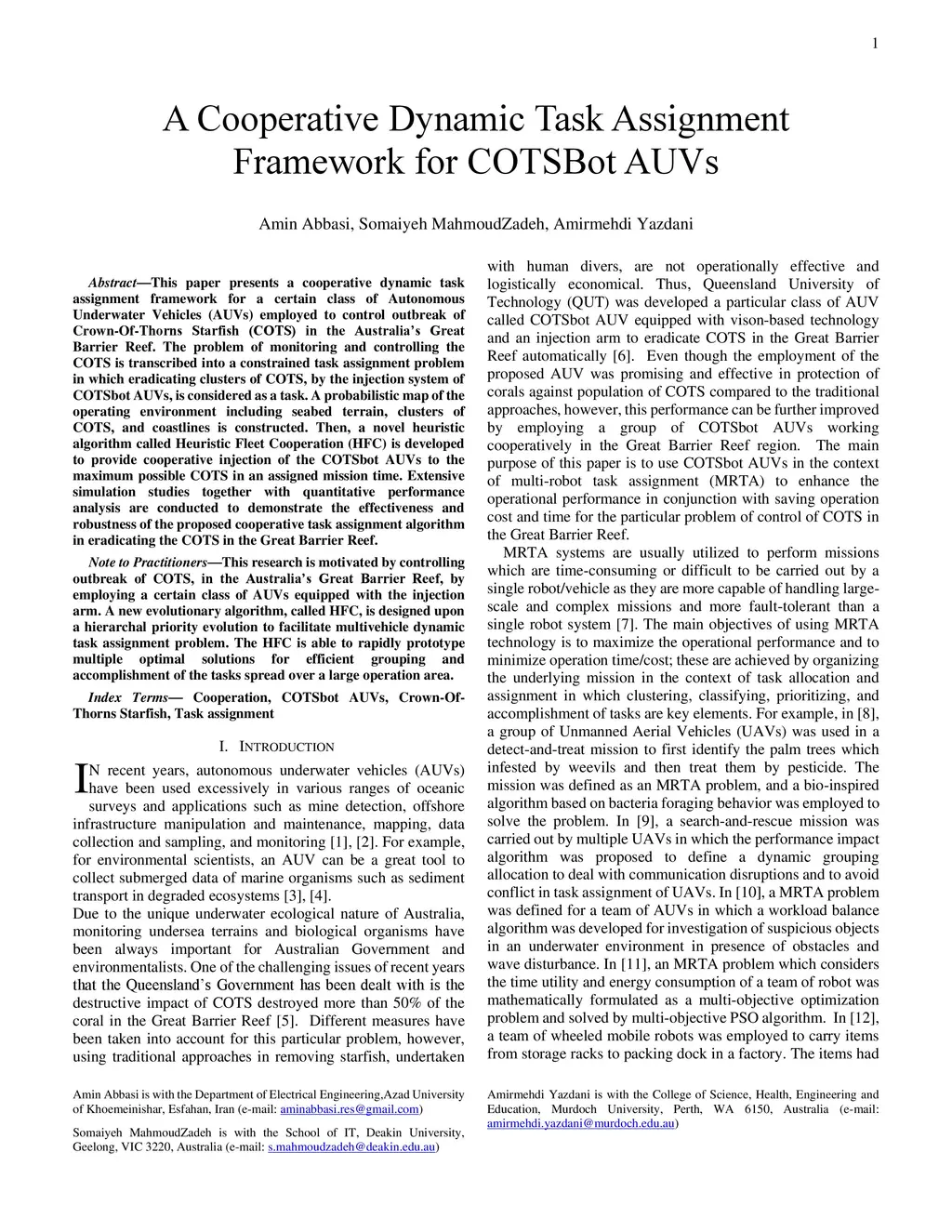 A Cooperative Dynamic Task Assignment Framework for COTSBot AUVs
