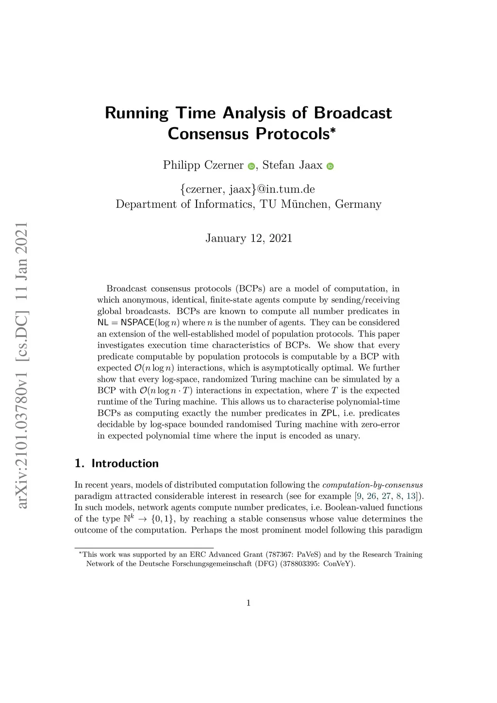 Broadcast consensus protocols (BCPs) are a model of computation, in which anonymous, identical, finite-state agents compute by sending/receiving global broadcasts. BCPs are known to compute all number predicates in where is the number of agents. They can be considered an extension of the well-established model of population protocols. This paper investigates execution time characteristics of BCPs. We show that every predicate computable by population protocols is computable by a BCP with expected interactions, which is asymptotically optimal. We further show that every log-space, randomized Turing machine can be simulated by a BCP with interactions in expectation, where is the expected runtime of the Turing machine. This allows us to characterise polynomial-time BCPs as computing exactly the number predicates in , i.e. predicates decidable by log-space bounded randomised Turing machine with zero-error in expected polynomial time where the input is encoded as unary.