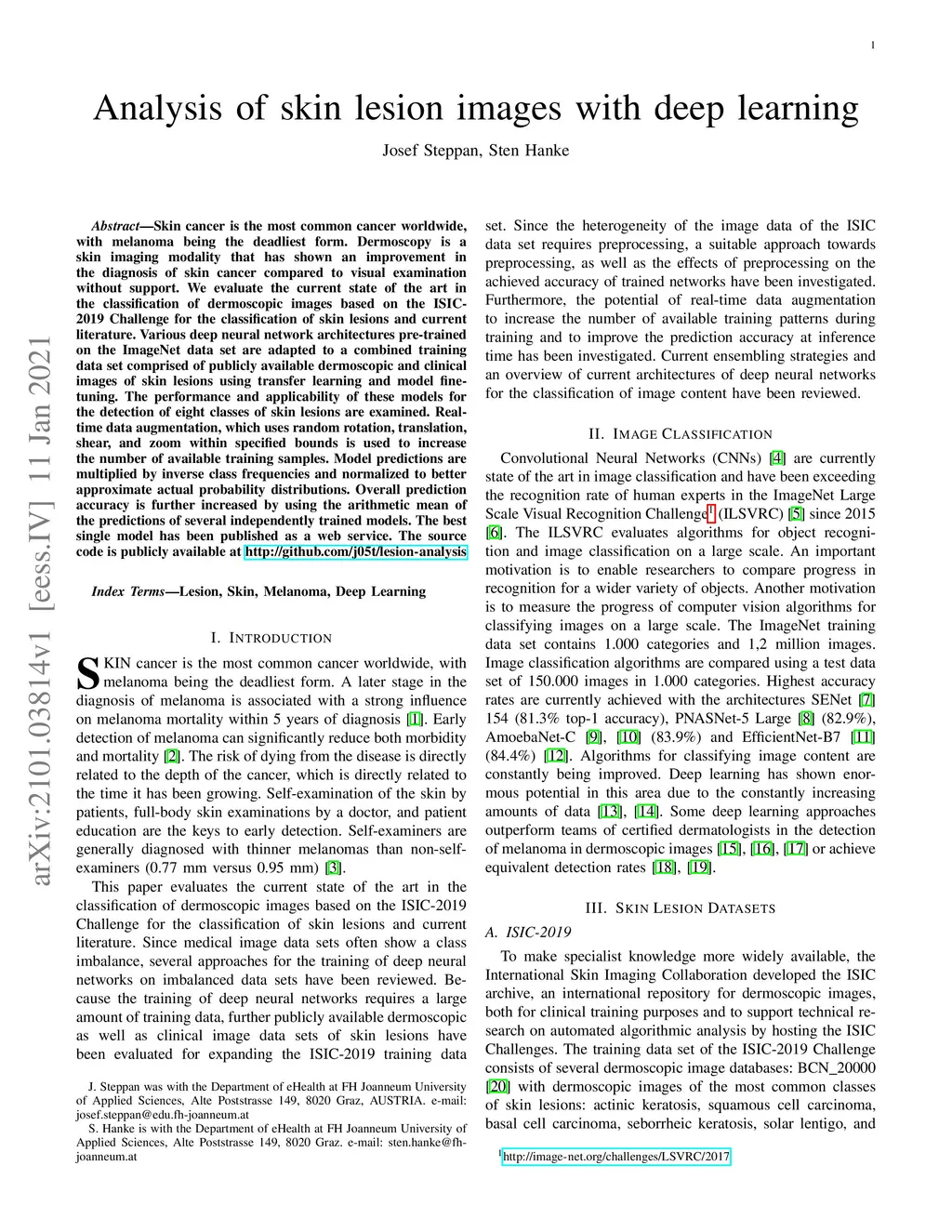 Analysis of skin lesion images with deep learning