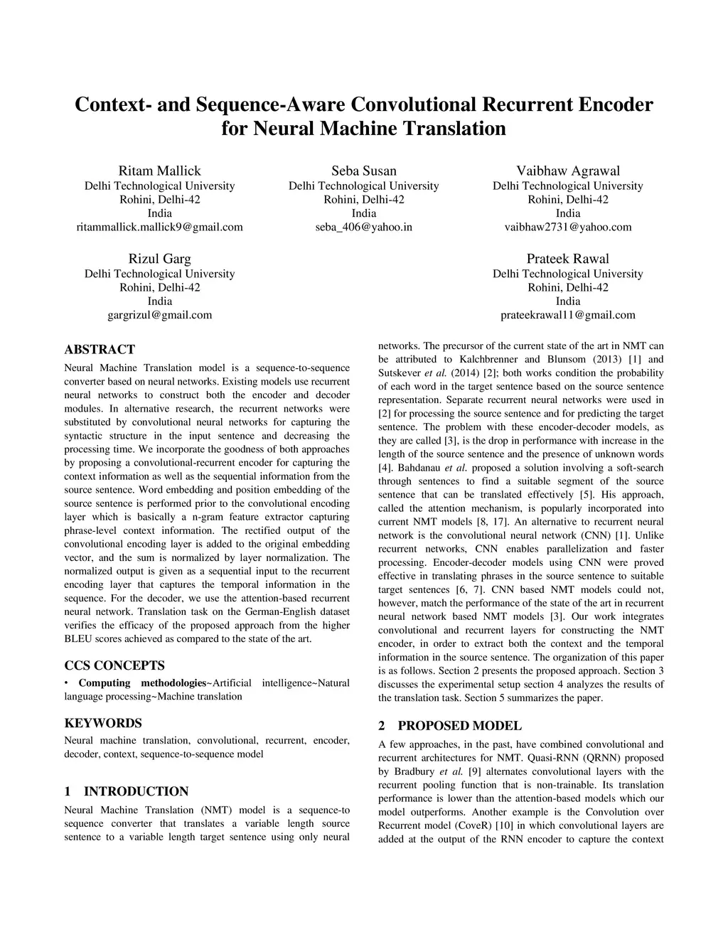 Context- and Sequence-Aware Convolutional Recurrent Encoder for Neural