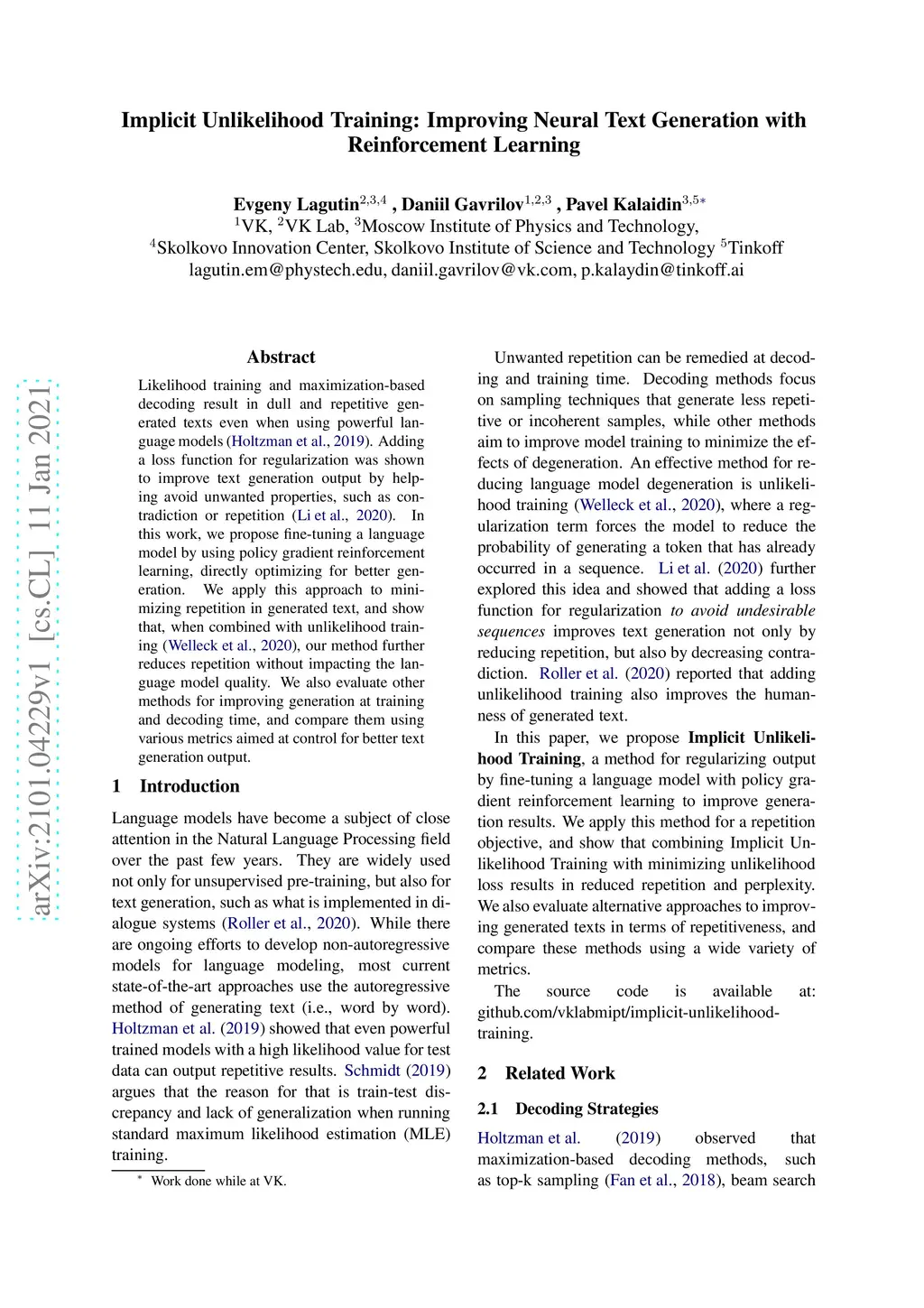 Implicit Unlikelihood Training: Improving Neural Text Generation with