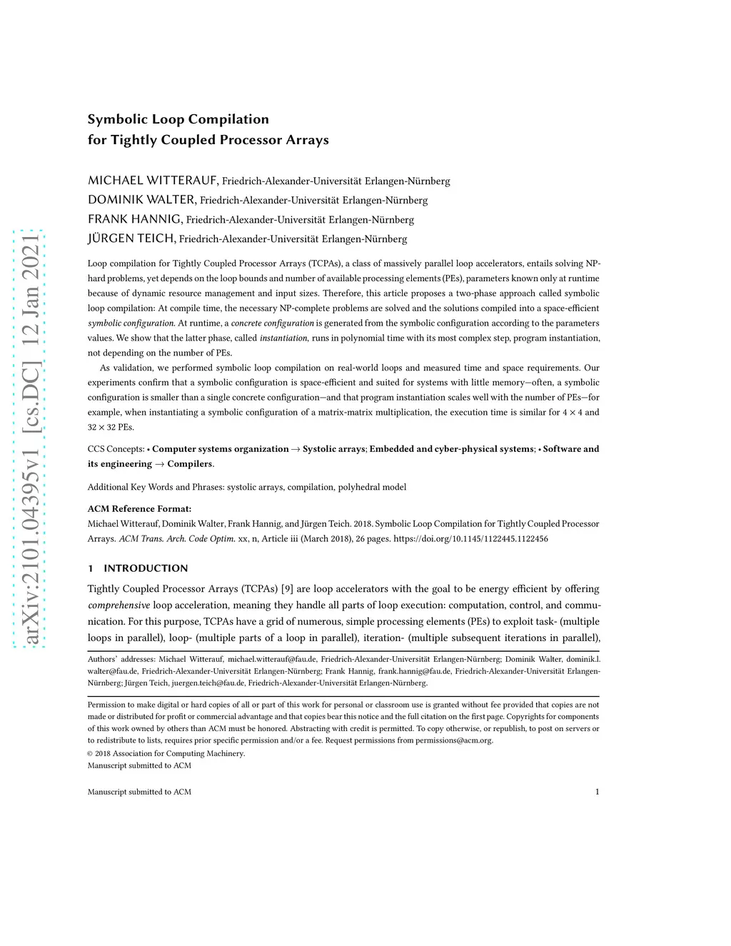 Symbolic Loop Compilation for Tightly Coupled Processor Arrays