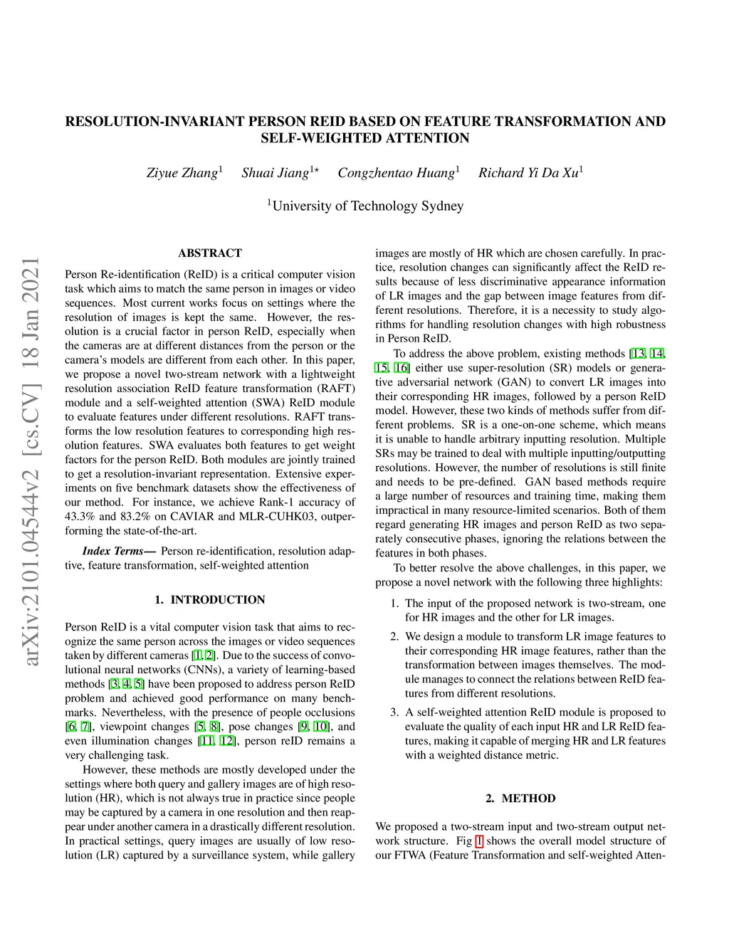 Resolution-invariant Person ReID Based on Feature Transformation and