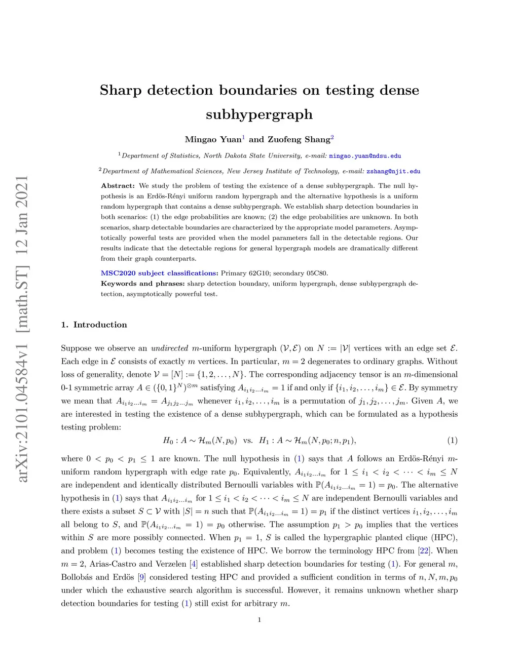 We study the problem of testing the existence of a dense subhypergraph. The null hypothesis is an Erdos-Renyi uniform random hypergraph and the alternative hypothesis is a uniform random hypergraph that contains a dense subhypergraph. We establish sharp detection boundaries in both scenarios: (1) the edge probabilities are known; (2) the edge probabilities are unknown. In both scenarios, sharp detectable boundaries are characterized by the appropriate model parameters. Asymptotically powerful tests are provided when the model parameters fall in the detectable regions. Our results indicate that the detectable regions for general hypergraph models are dramatically different from their graph counterparts.